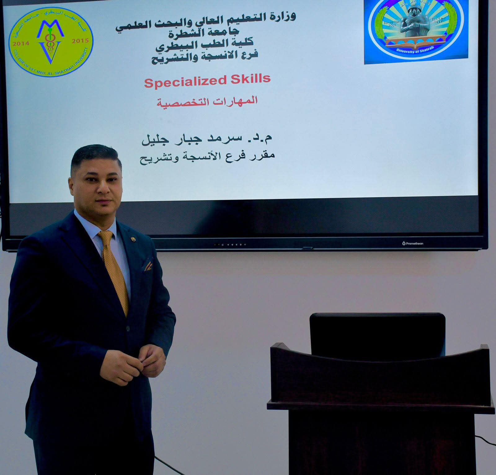 أقام فرع الأنسجة والتشريح في كلية الطب البيطري دورة تدريبية بعنوان (المهارات التخصصية)، وذلك للفترة من 15 إلى 16 تشرين الأول 2025، حاضر فيها م.د. سرمد جبار جليل.