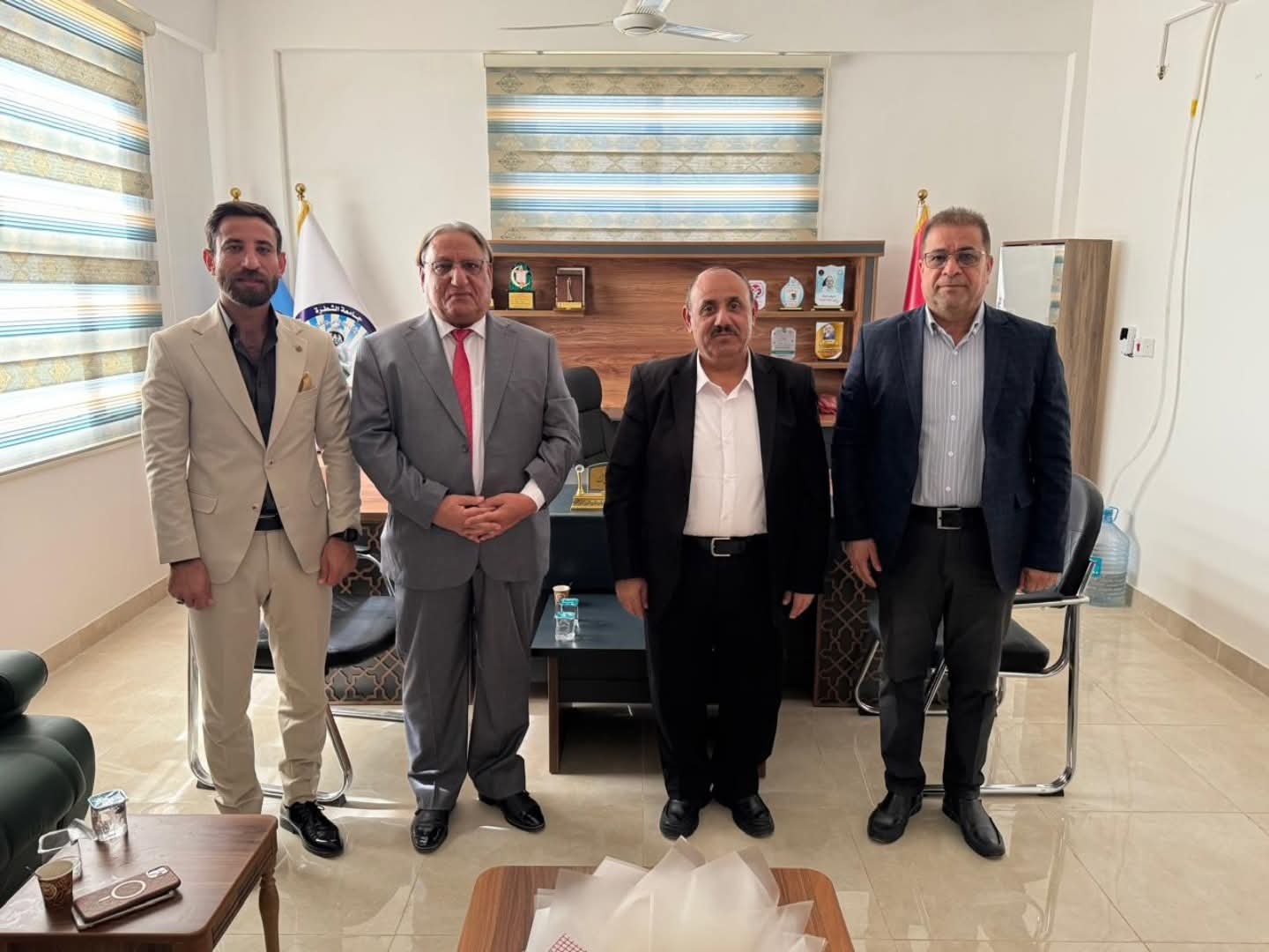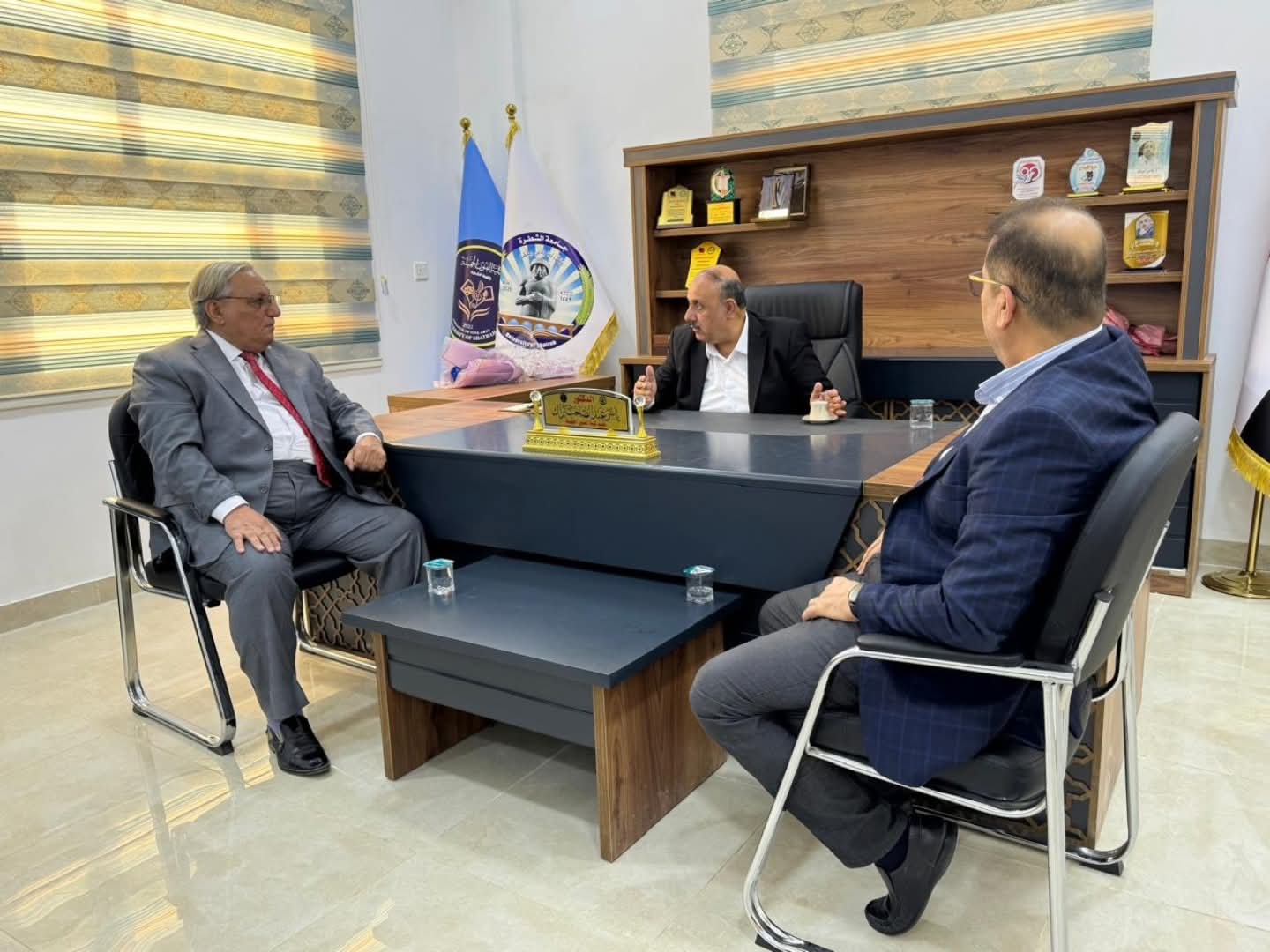 استقبل عميد كلية الفنون الجميلة الدكتور ياسر البراك، صباح اليوم الاثنين 29 أيلول 2025 في مكتبه الاستاذ المساعد الدكتور فيصل عبد عوده من قسم التربية الفنية بجامعة العين العراقية، والدكتور أحمد السعيدي التدريسي في كلية الإعلام بجامعة ذي قار.