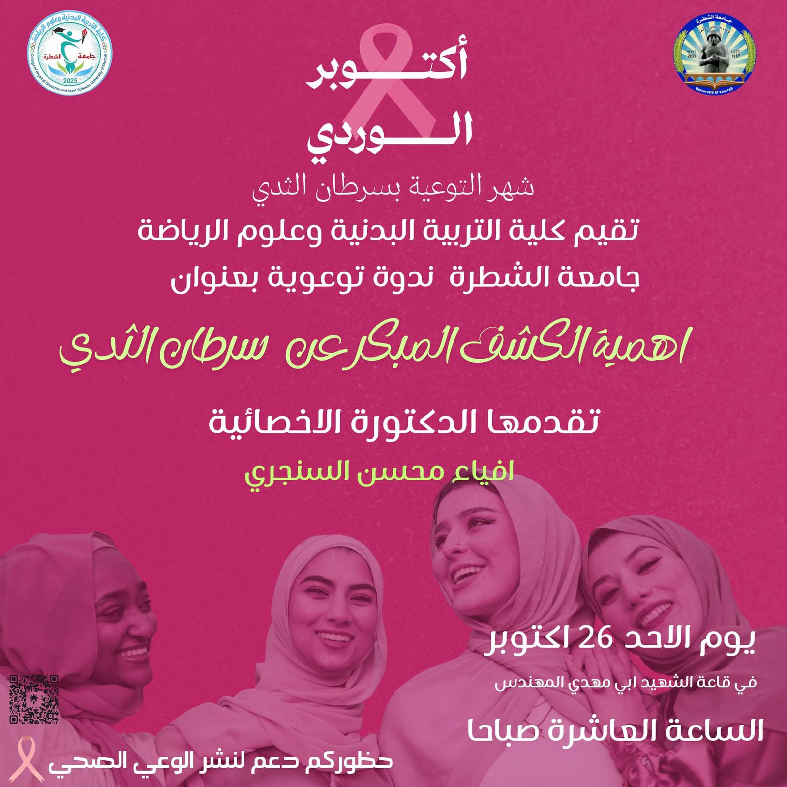 كلية التربية البدنية وعلوم الرياضة في جامعة الشطرة تنظم ندوة توعوية بعنوان "أهمية الكشف المبكر عن سرطان الثدي"