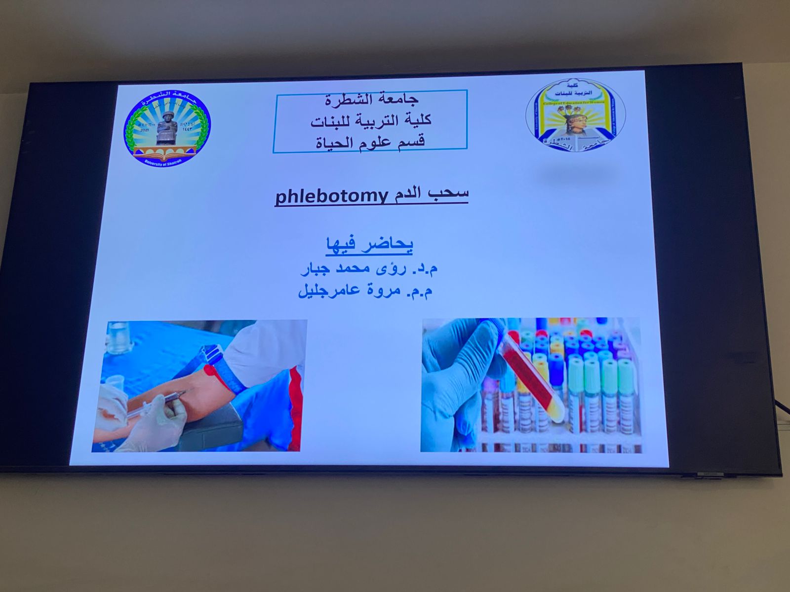 تضمّن اليوم الأول تدريباً عملياً على سحب الدم (Phlebotomy)، شمل التعرف على أساسيات السحب، ومتطلبات العملية، وأنواع الأنابيب والعينات.