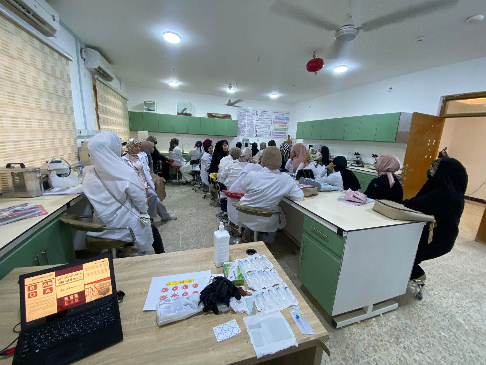 أما اليوم الثاني فقد تناول موضوع تحديد فصائل الدم (Blood Grouping)، حيث أجرت الطالبات التطبيق العملي لخطوات تحديد الفصائل ضمن بيئة مختبرية تعليمية.