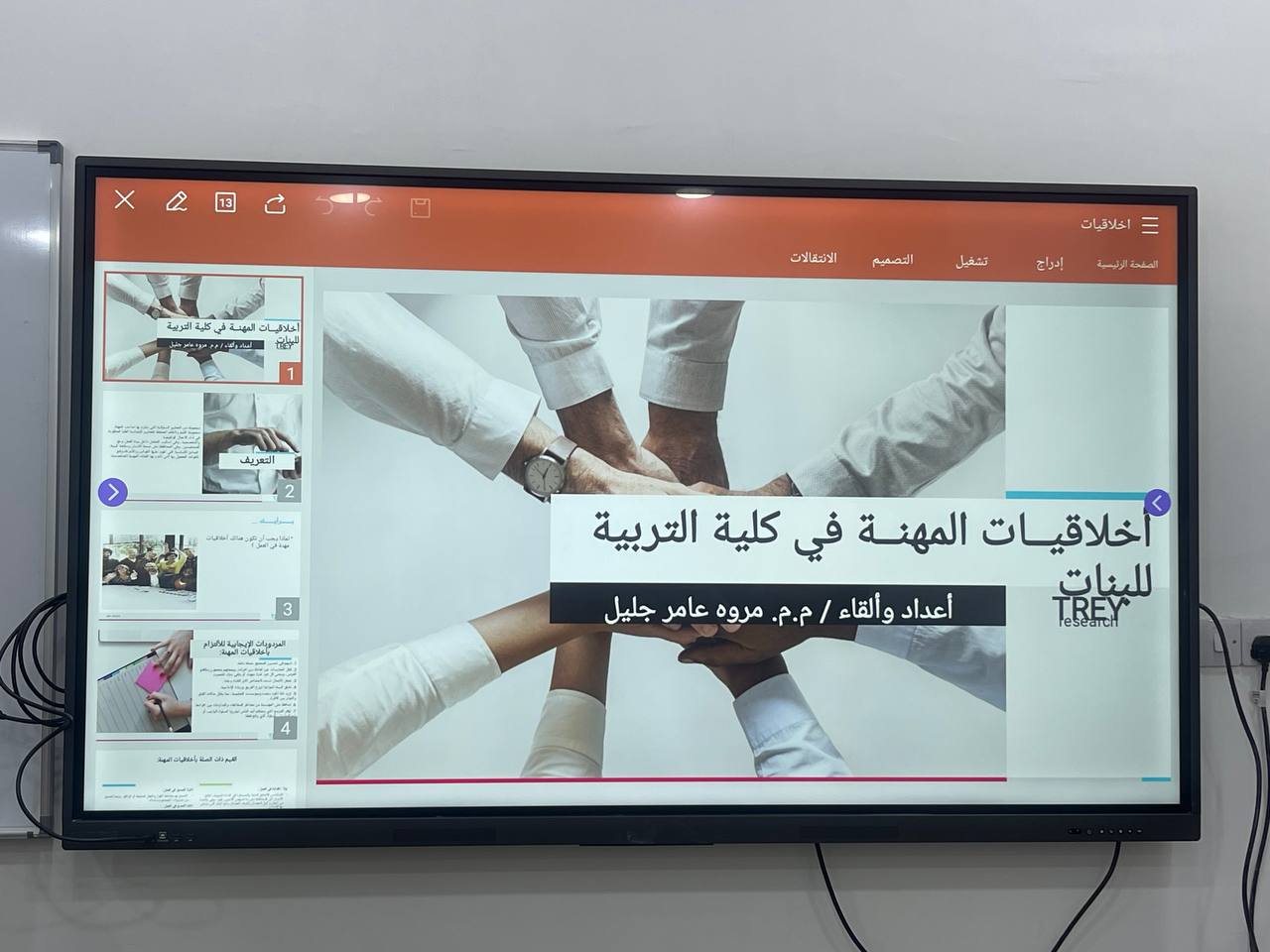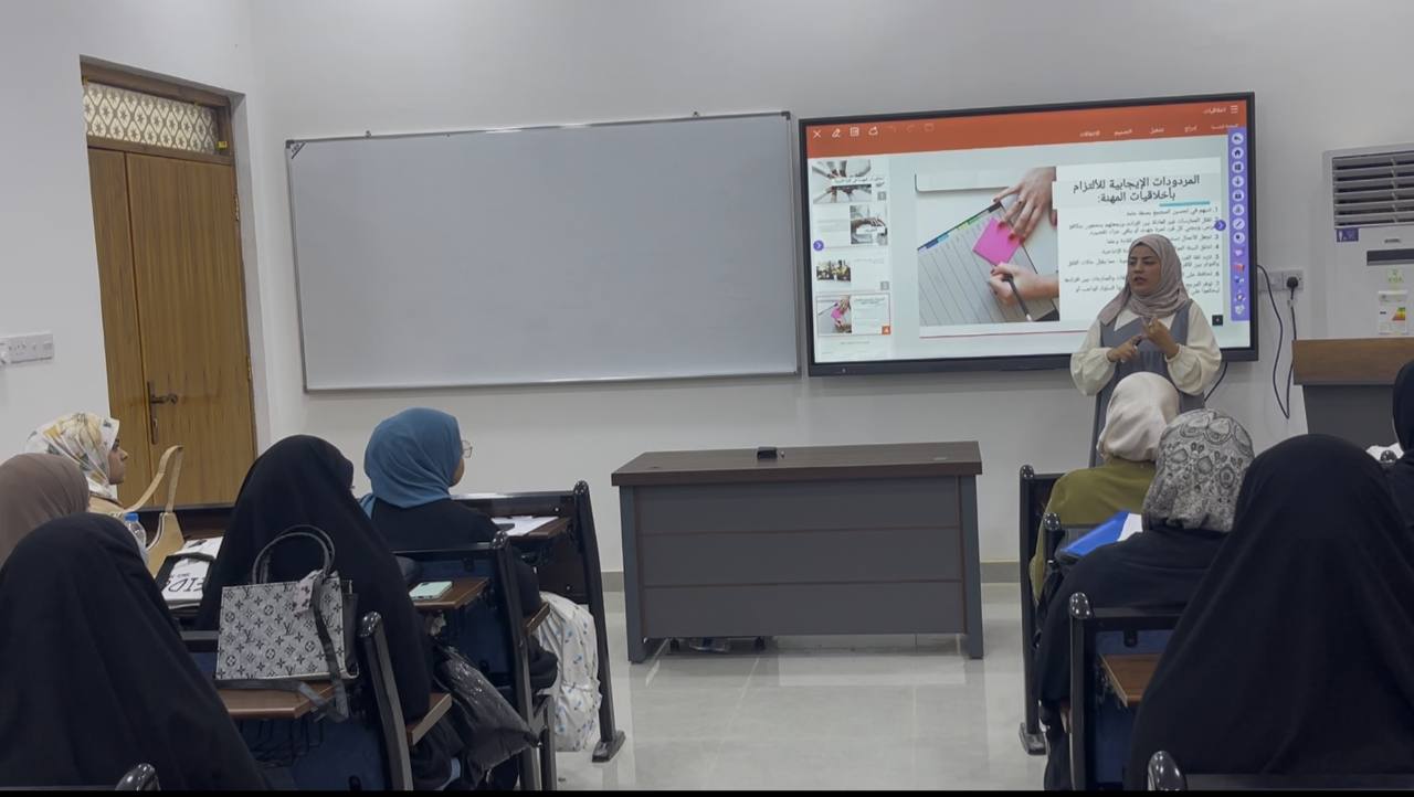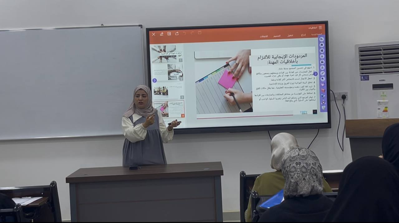نظّم قسم علوم الحياة في كلية التربية للبنات يوم الثلاثاء الموافق 18/11/2025 ندوة علمية بعنوان "أخلاقيات المهنة"، ضمن سلسلة النشاطات الهادفة إلى تعزيز ثقافة الالتزام المهني لدى الطالبات والكوادر التدريسية.