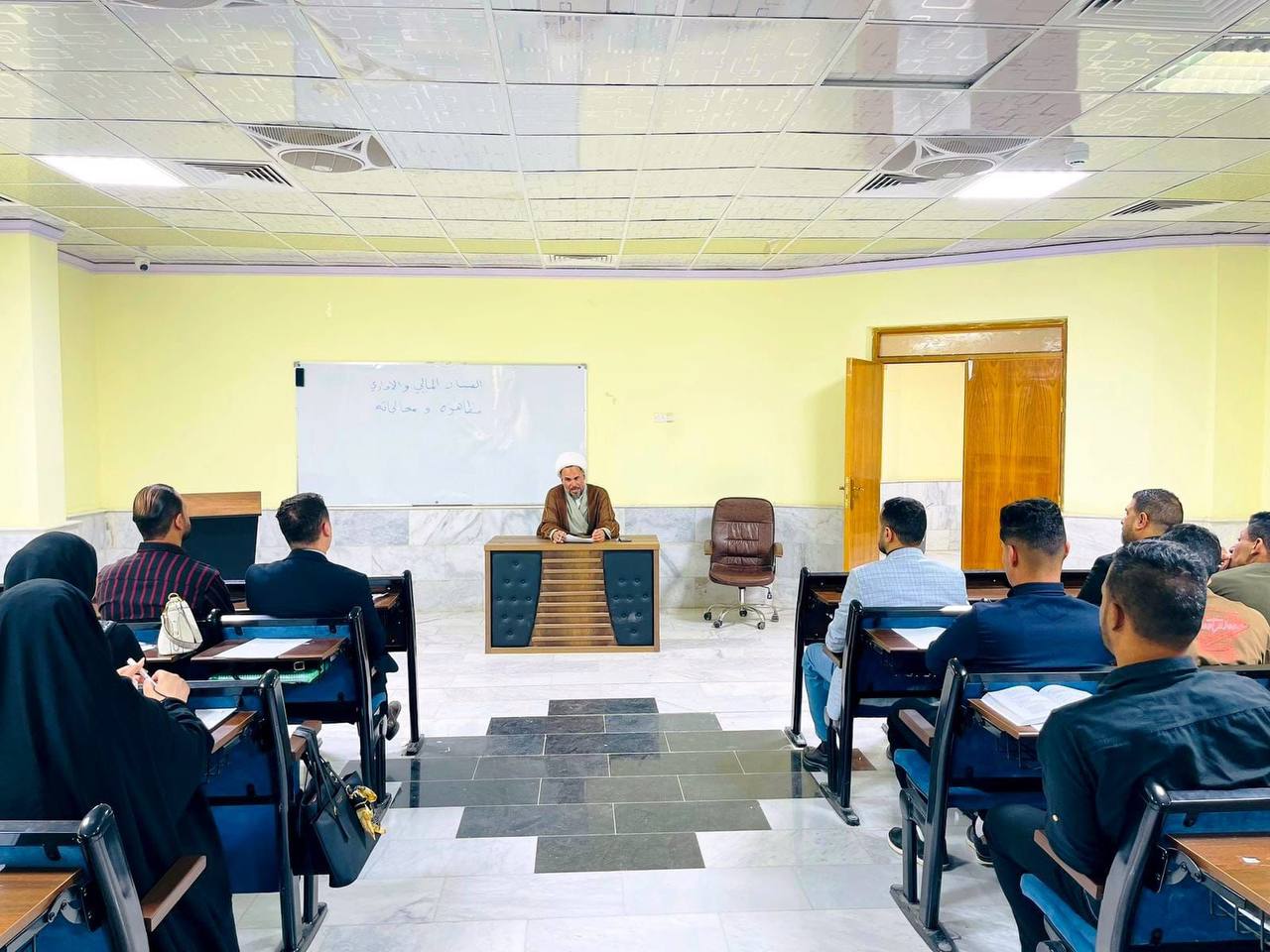 برعاية السيد رئيس الجامعة أ.د باسم عبدالحسين جارالله، وبإشراف أ.م.د صفاء حسين علي عميد الكلية، وضمن نشاطاتها العلمية والتوعوية، أقامت الكلية ندوة تثقيفية حول مكافحة الفساد، قدّم فيها الباحث م.د جاسم حمود مهاوش ضمن أنشطة مكافحة الفساد محاور ركّزت على أهمية تعزيز قيم النزاهة والشفافية في المؤسسات، وترسيخ السلوك الأخلاقي في المجتمع.