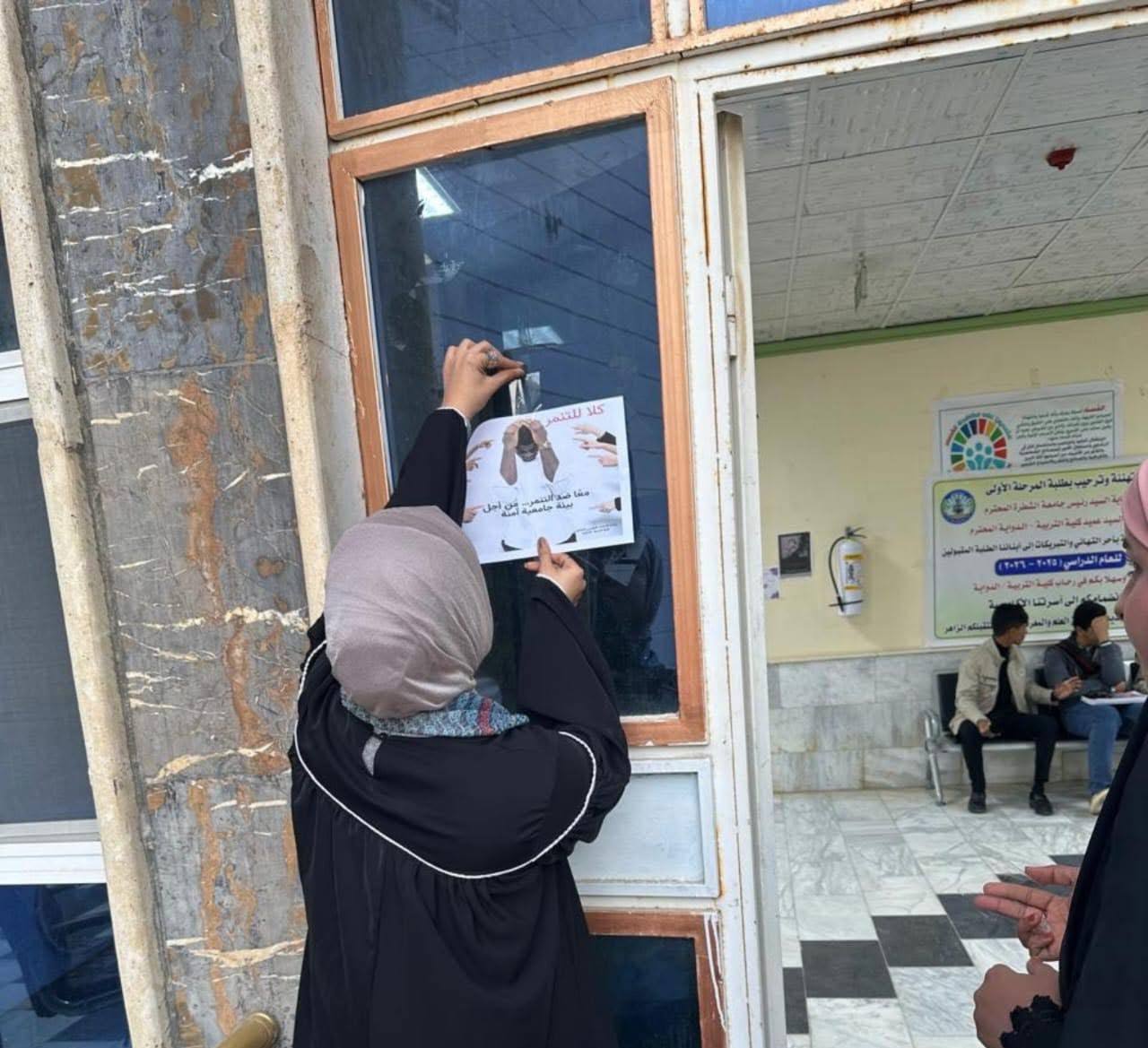 قامت وحدة الإرشاد النفسي الجامعي في كلية التربية – الدواية بتنظيم حملة توعوية في أروقة الكلية بعنوان «كلا للتنمّر»، وذلك بإشراف ورعاية السيد عميد الكلية أ.م.د صفاء حسين علي، وبمتابعة السيد معاون العميد م. رحمن عيسى صافي بهدف تعزيز الوعي النفسي ونشر ثقافة الاحترام والتسامح بين الطلبة، وتهيئة بيئة جامعية آمنة وداعمة للجميع.