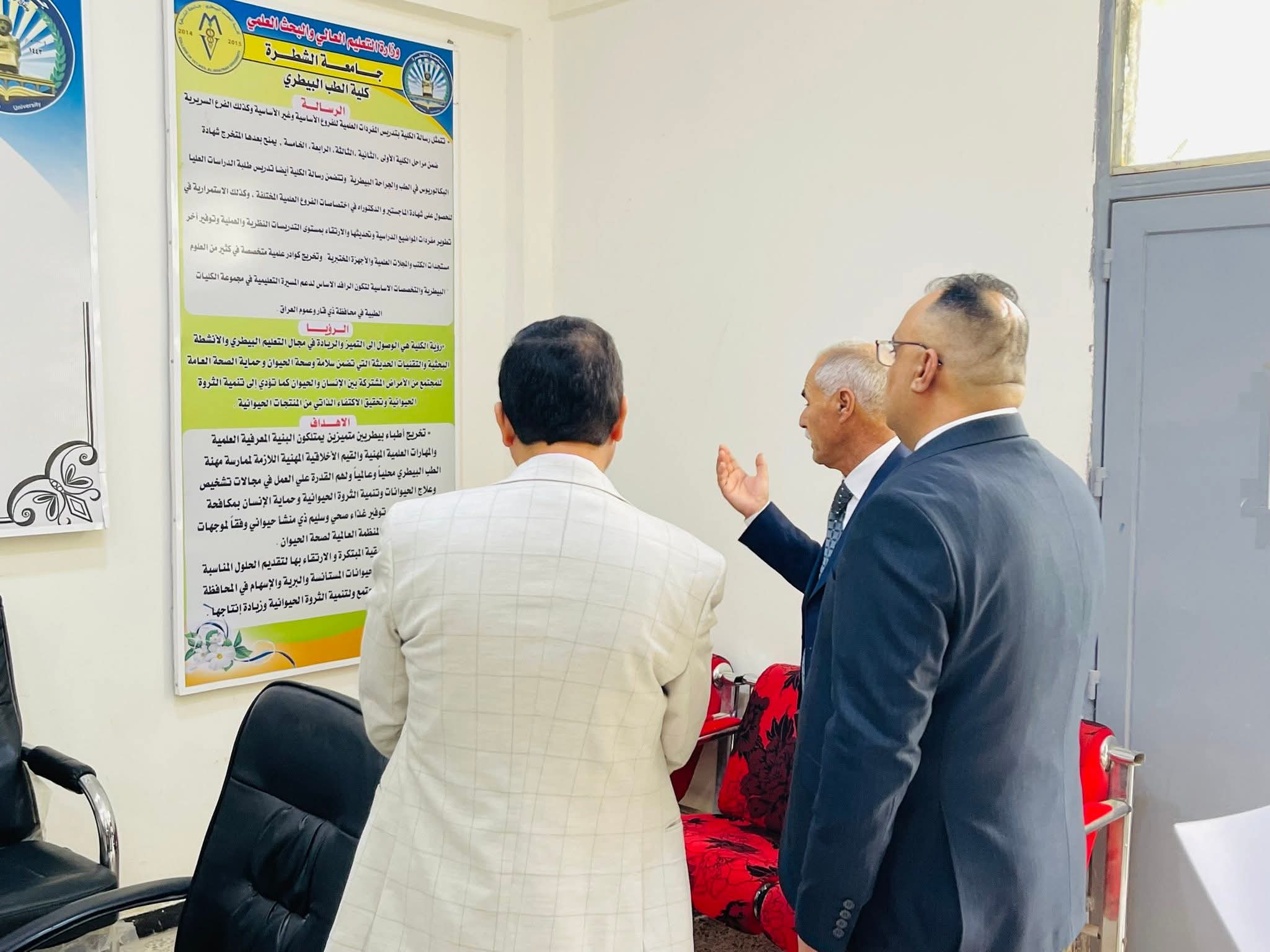 استقبلت كلية الطب البيطري في جامعة الشطرة، اليوم الاثنين الموافق 6 نيسان 2026، اللجنة الوزارية المكلفة بالاعتماد البرامجي لبرنامج البكالوريوس، وذلك في إطار تقييم البرامج الأكاديمية وبيان مدى مطابقتها لمعايير الجودة المعتمدة.