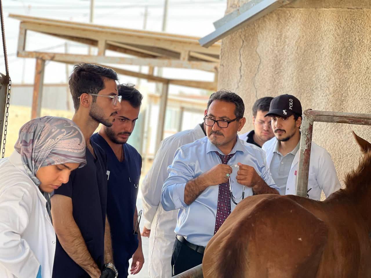 جانب من المحاضرة العملية لطلبة المرحلة الرابعة لمادة السريريات في كلية الطب البيطري