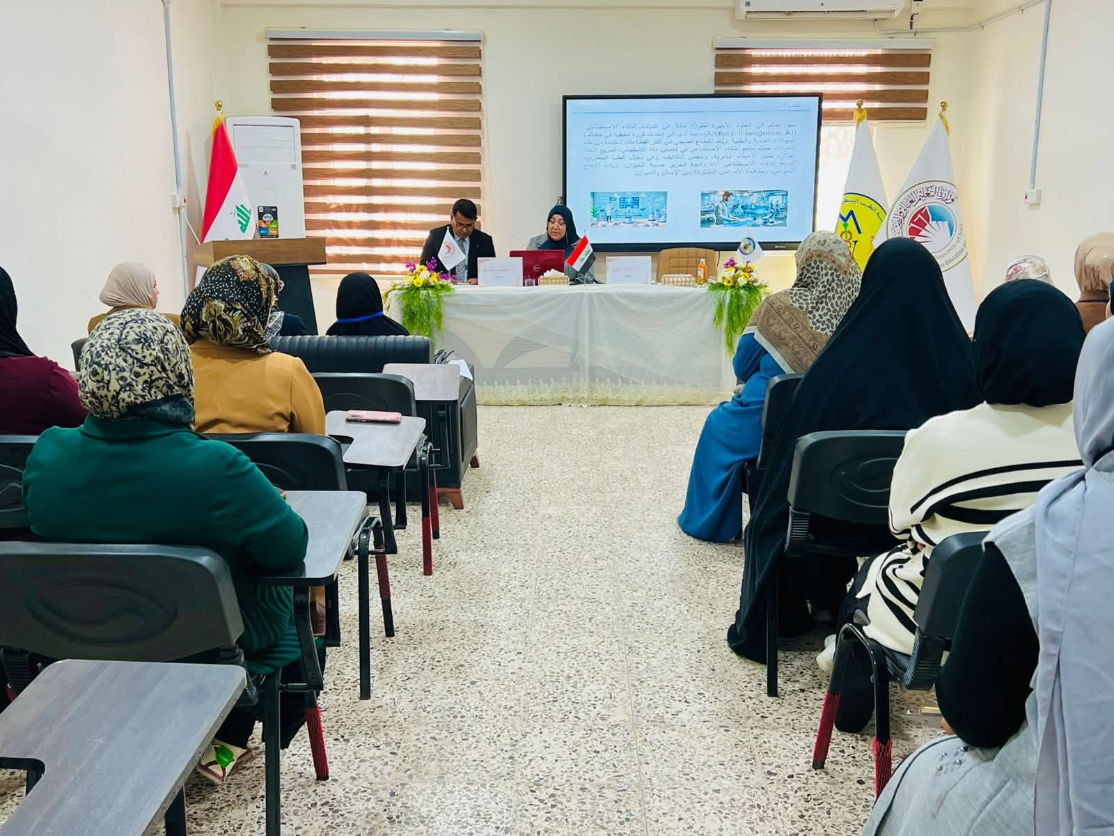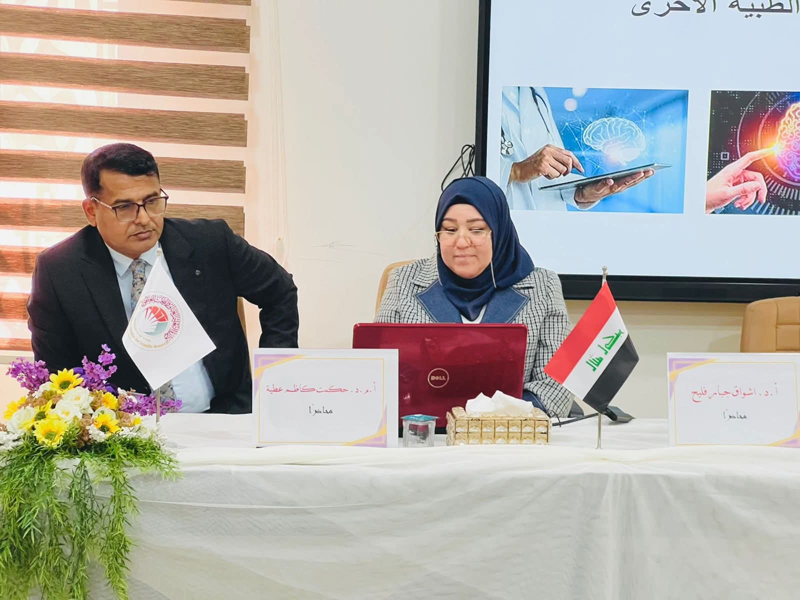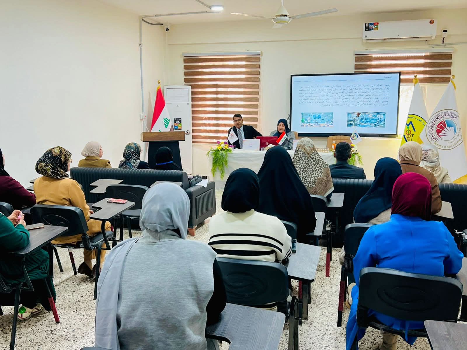 The symposium was delivered by Professor Dr. Ashwaq Jabbar Faleh and Assistant Professor Dr. Hikmat Kazem Atiya, who discussed the definition of artificial intelligence and its most important applications in the veterinary field, as well as its role in developing medical diagnostic methods, improving the accuracy of results, and speeding up disease detection.
