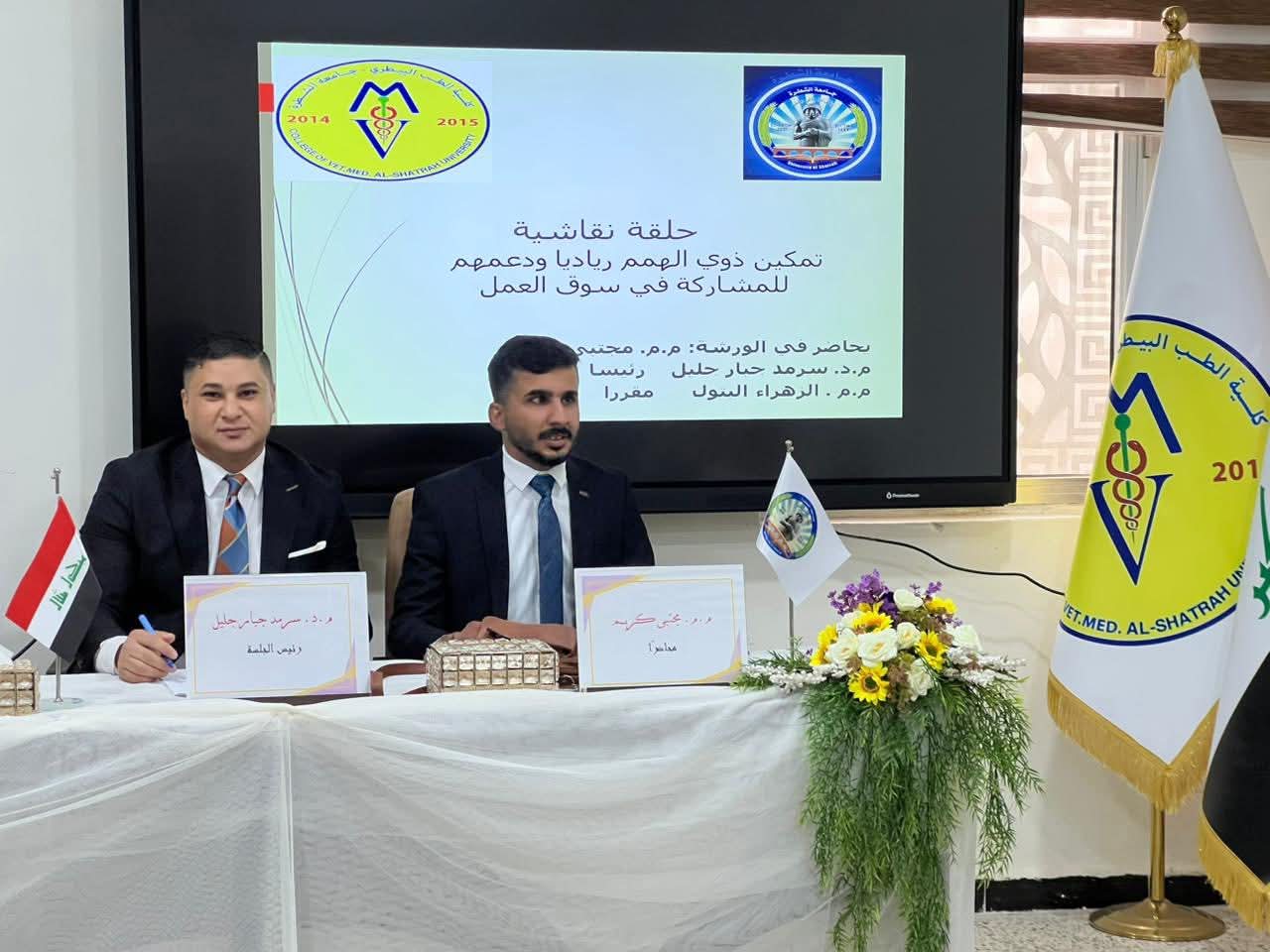 As part of Entrepreneurship Week and stemming from the principle #YourIdeaIsIraqi_IraqInnovates, under the slogan “From the Land of Mesopotamia, Ideas Emerge”, the College of Veterinary Medicine held a panel discussion entitled “Empowering People with Disabilities Entrepreneurially and Supporting Their Participation in the Labor Market” on Tuesday, February 10, 2026.