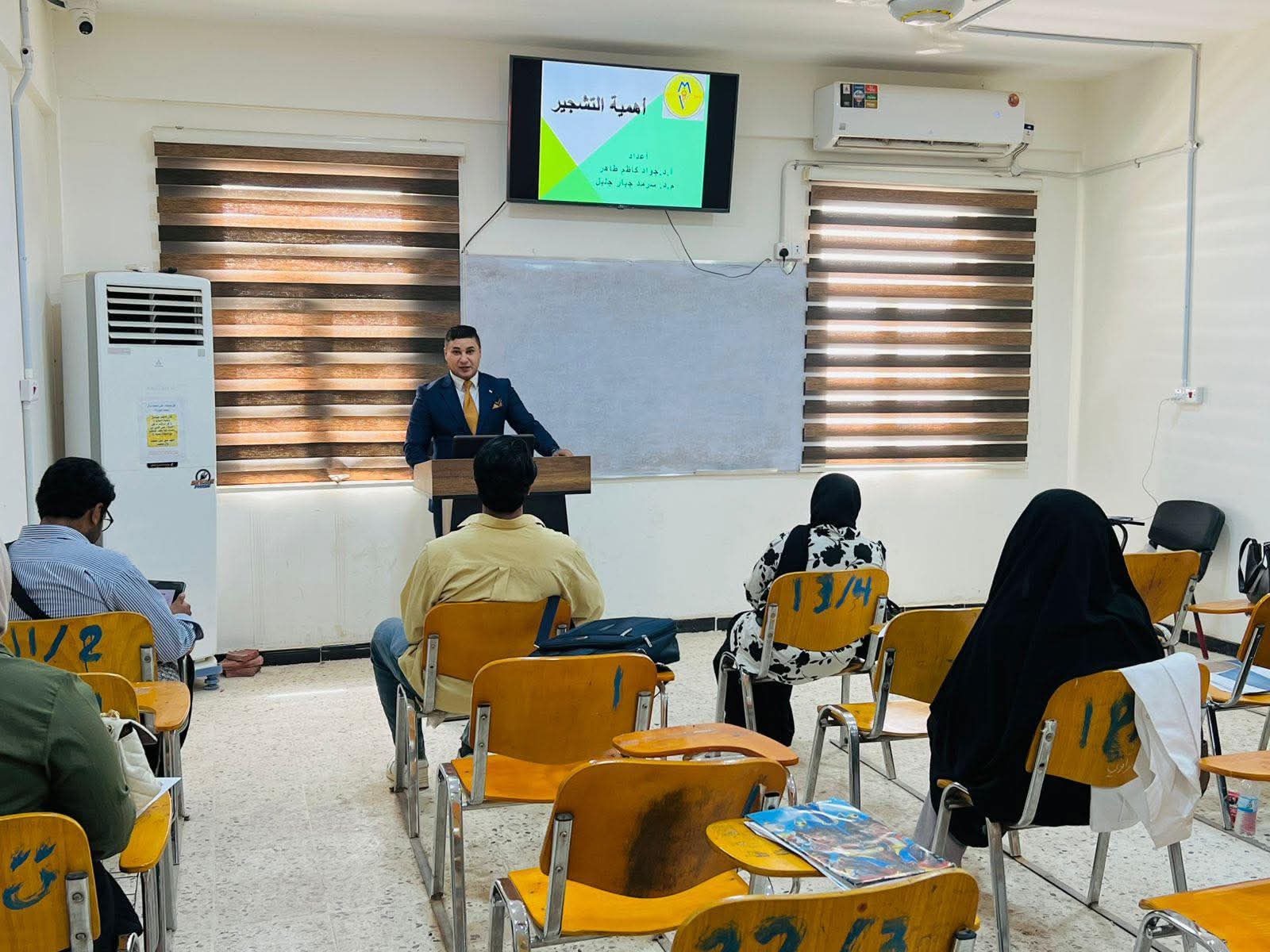Present at the workshop was Dr. Sarmad Jabbar Jalil, who during his lecture addressed the importance of afforestation in reducing climate change, its role in improving air quality and preserving biodiversity, as well as its positive impact on supporting environmental balance and reducing desertification.