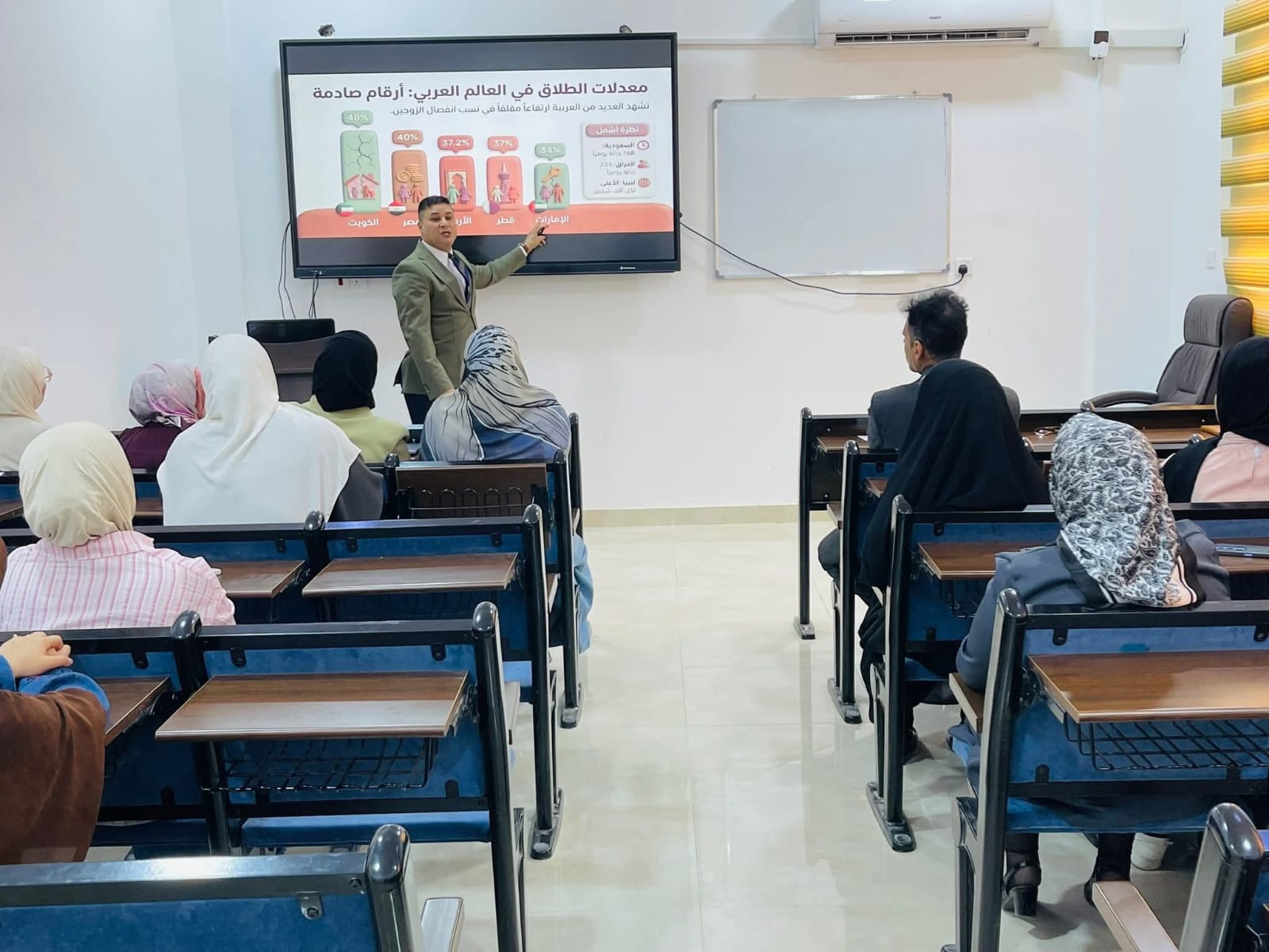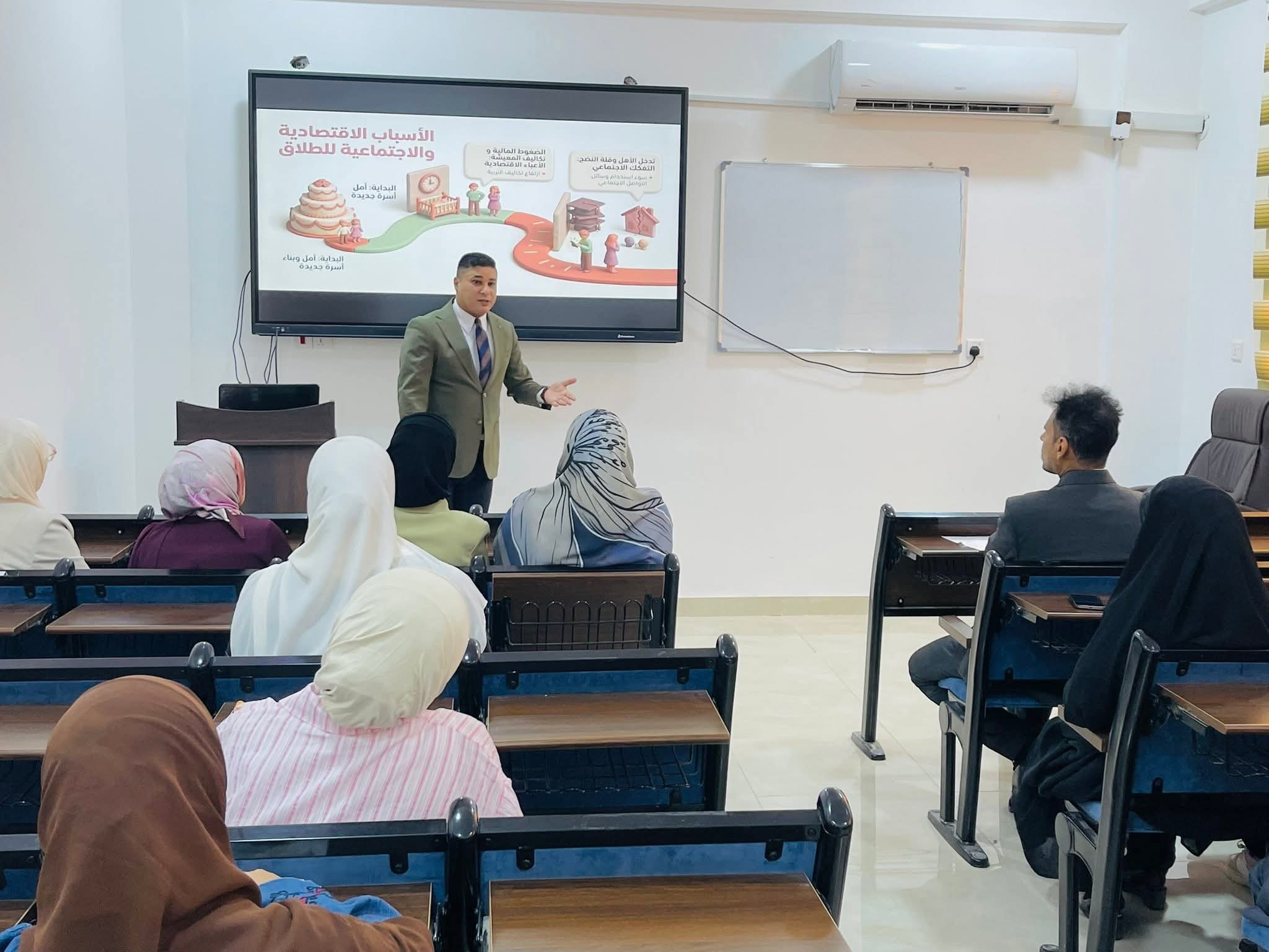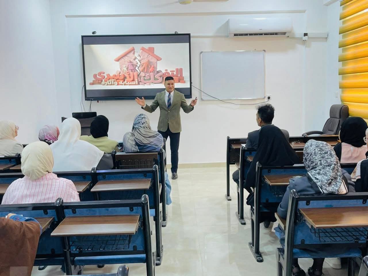 The seminar, delivered by Assistant Professor Dr. Sarmad Jabbar Jaleel, addressed the main causes leading to family disintegration, such as economic pressures and weak communication among family members, as well as the psychological and social consequences that affect children and society at large.
