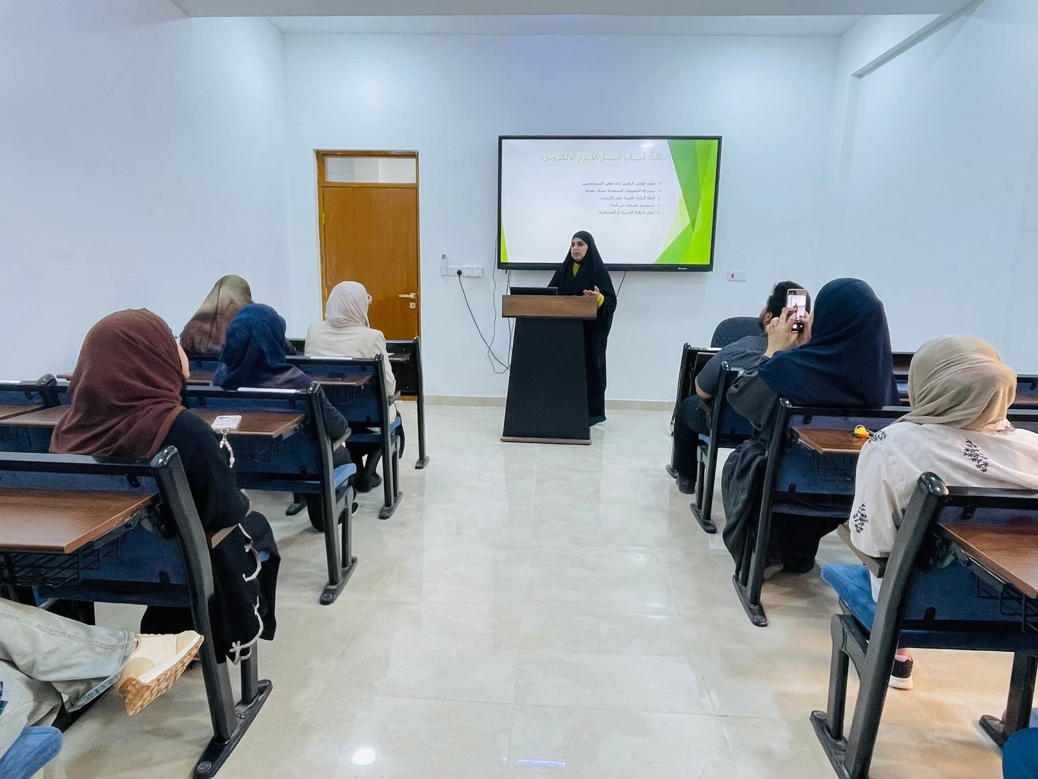 The speakers, Assistant Lecturer Shifa Muhail Hilal and Ms. Rusul Ali, highlighted: