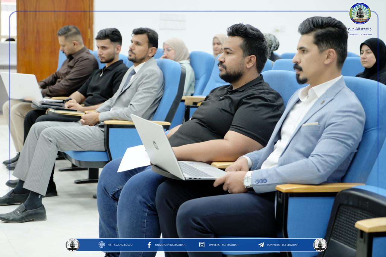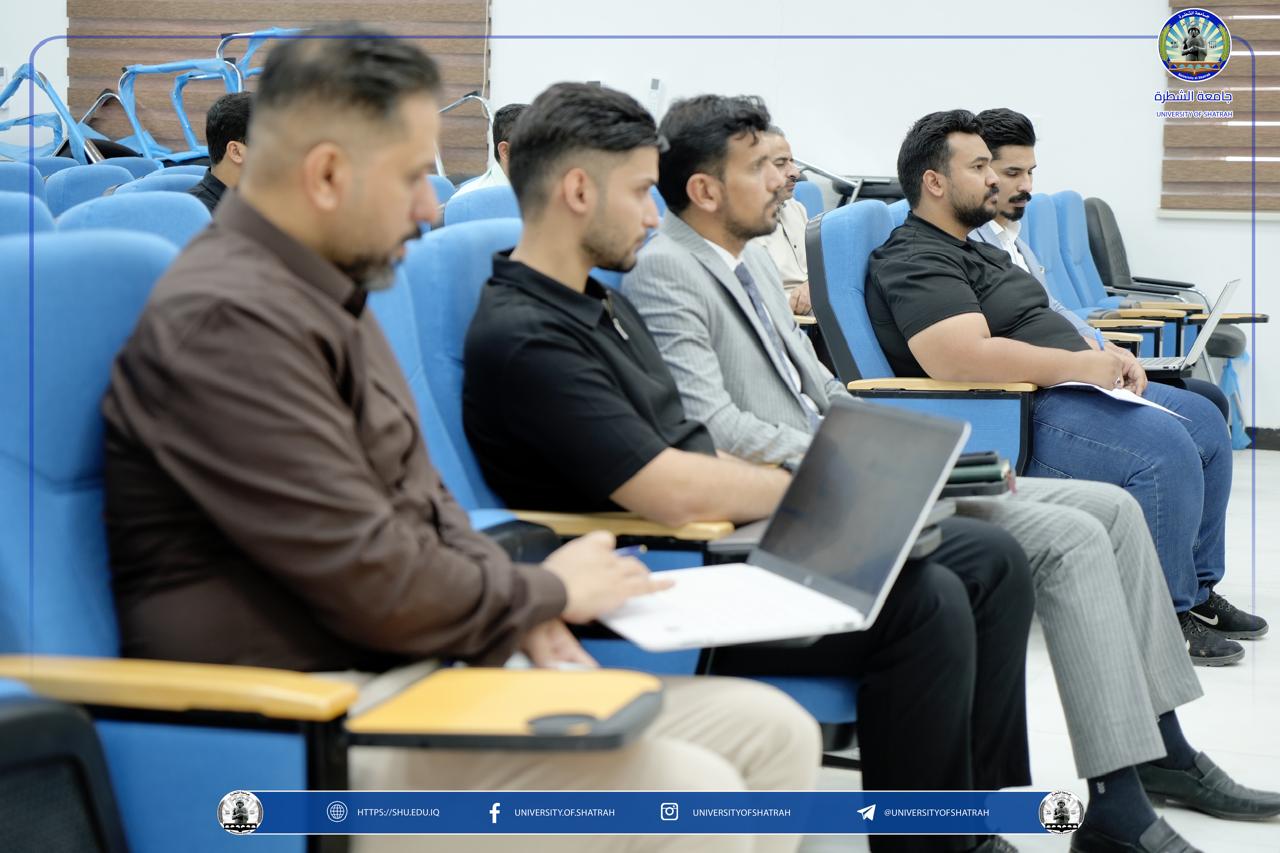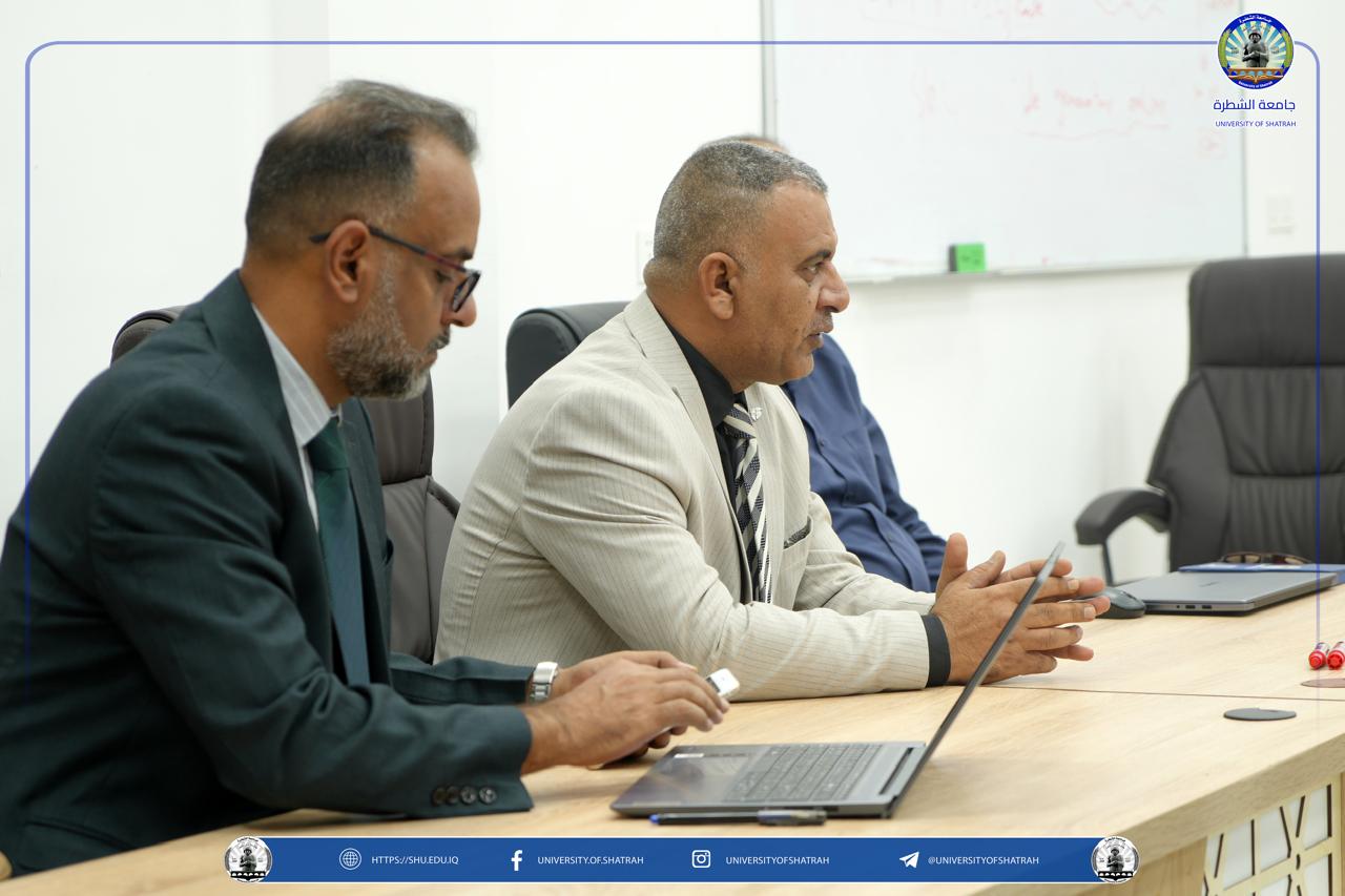 The Assistant President of University of Shatrah for Scientific Affairs, Assistant Professor Dr. Fadel Mohsen Hamad, held an expanded meeting with student affairs division in the colleges and administrative affairs officials to follow up on the implementation of the SIS program for student affairs management and the HR program for human resources management on Wednesday, October 1, 2025, The meeting was attended by the Director of the Registration and Student Affairs Department and the Director of the Electronic Calculator Center.