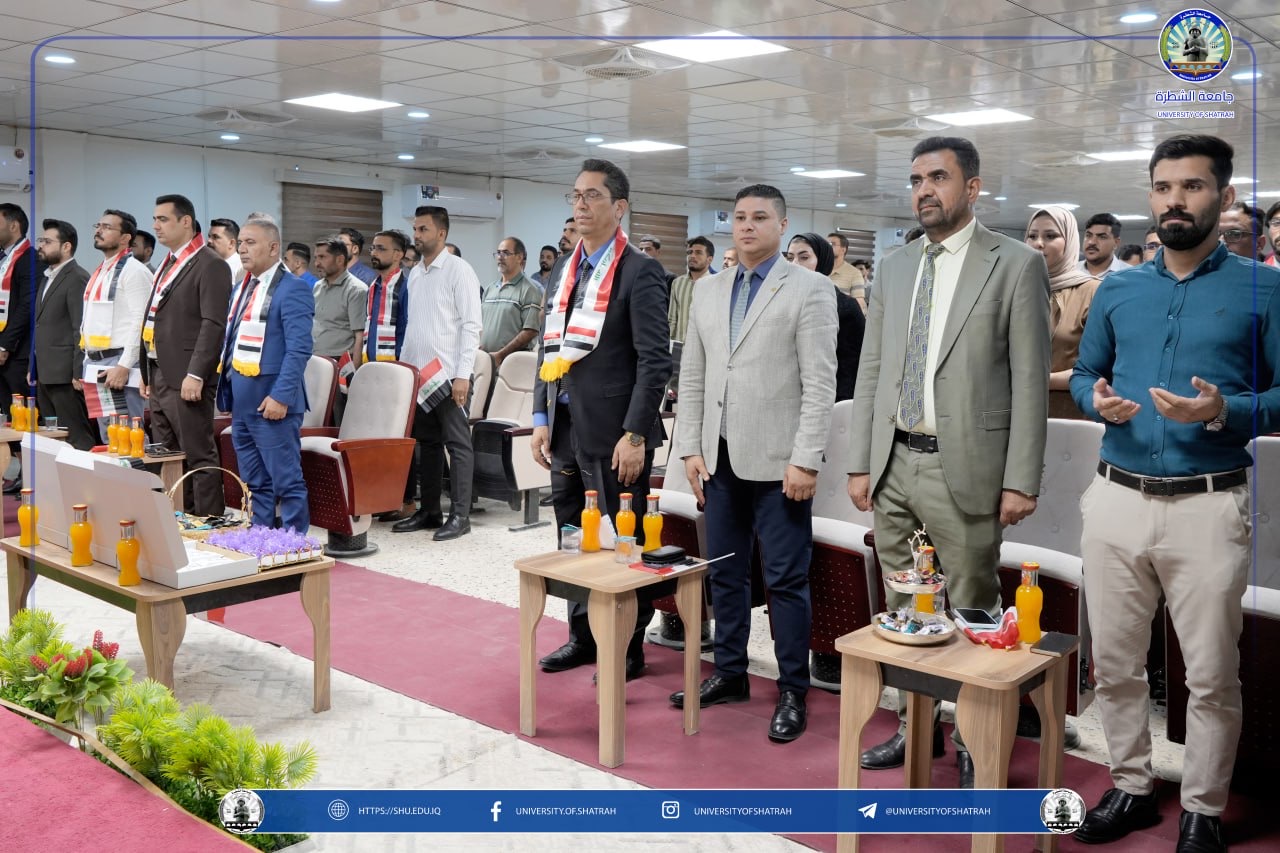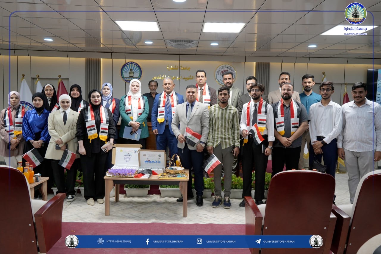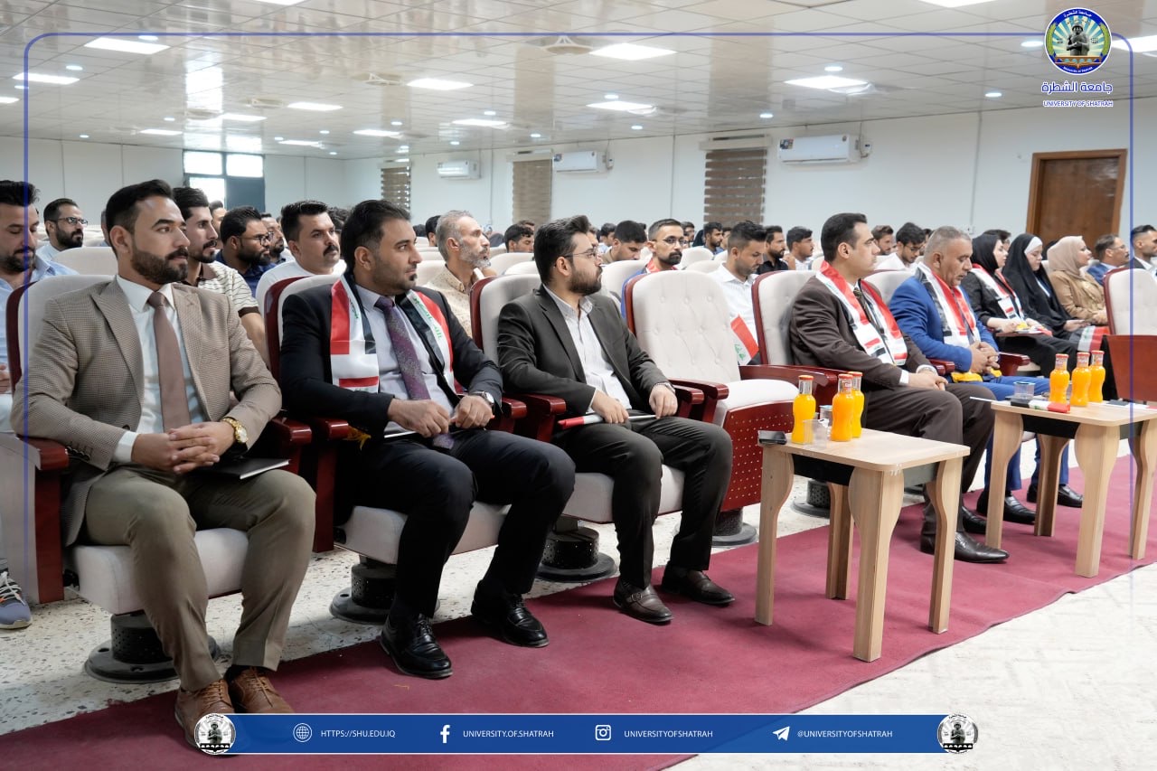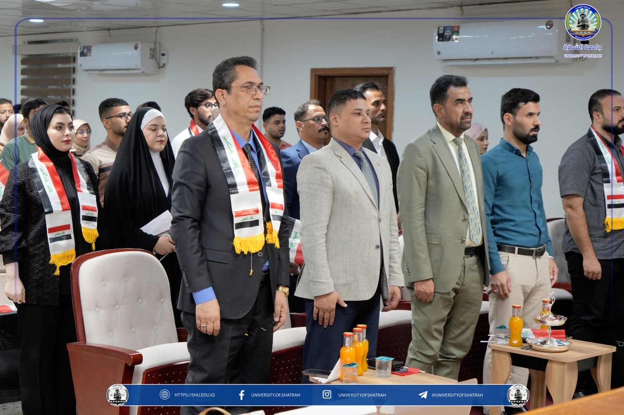 Under the patronage of the President of University of Shatrah , Prof. Dr. Bassem Abdul Hussein Jarallah, the Women's Affairs Division at the University Presidency, in cooperation with the Women's Affairs Units in the Faculties of Engineering, Veterinary Medicine, Applied Medical Sciences, Physical Education and Sports Sciences, and Fine Arts, a festive celebration on the occasion of the Iraqi National Day, on Wednesday, October 8, 2025, at the Martyr Abu Mahdi Al-Muhandis Hall.
