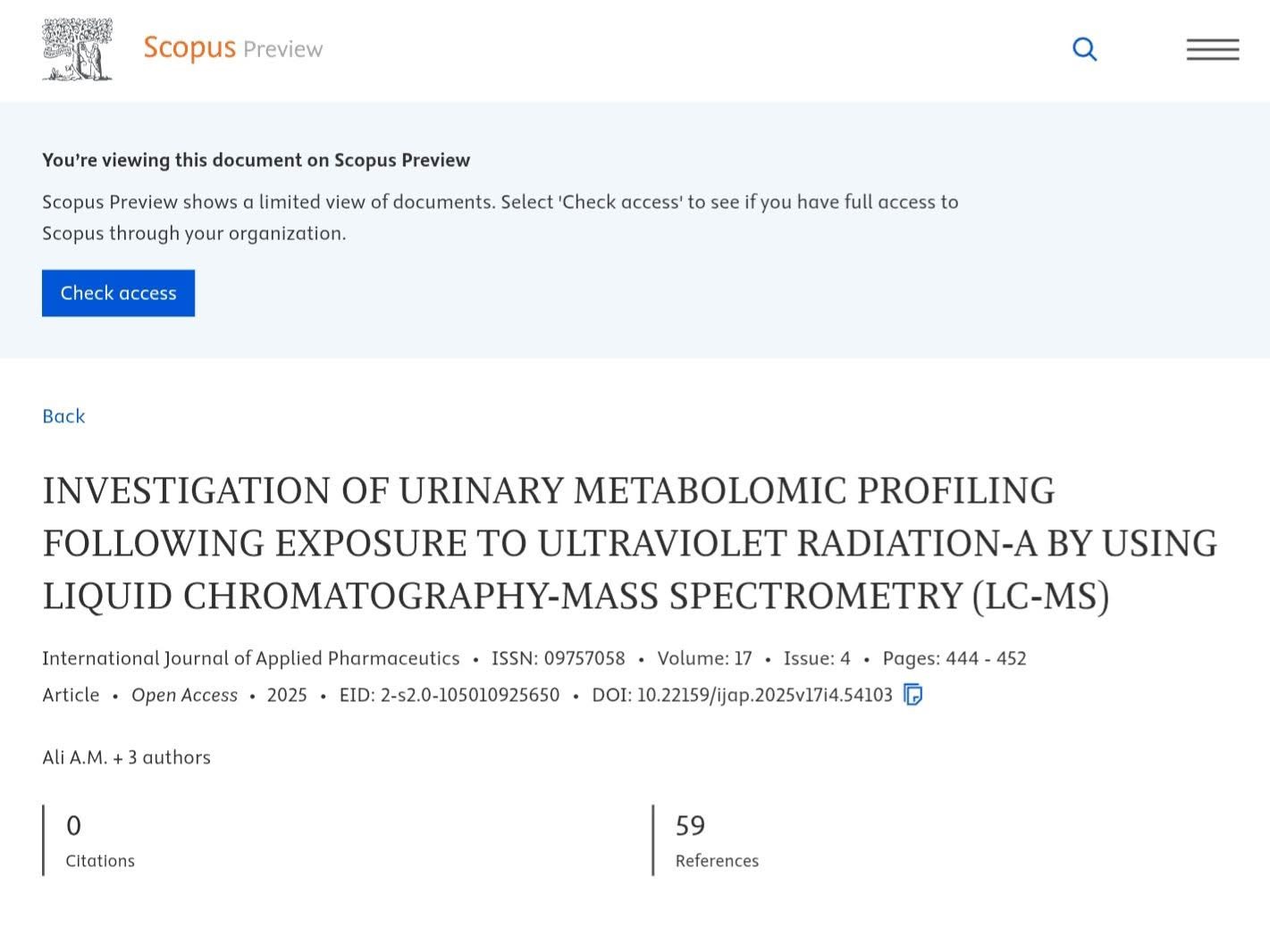 INVESTIGATION OF URINARY METABOLOMIC PROFILING FOLLOWING EXPOSURE TO ULTRAVIOLET RADIATION-A BY USING LIQUID CHROMATOGRAPHY-MASS SPECTROMETRY (LC-MS)