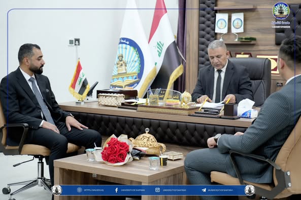 The Assistant President for Scientific Affairs, Assistant Professor Dr. Fadel Mohsen Hamad, received a delegation from the Holy Abbasia Shrine in his office On Monday morning, September 29, 2025, as part of the communication and coordination between the shrine and Iraqi universities to discuss the university's participation in the central graduation ceremony for students with disabilities.