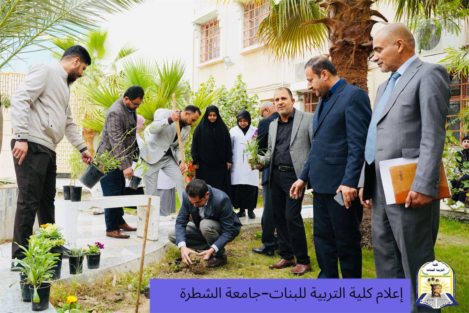 كلية التربية للبنات في جامعة الشطرة تقيم فعاليات اليوم الوطني للتشجير.