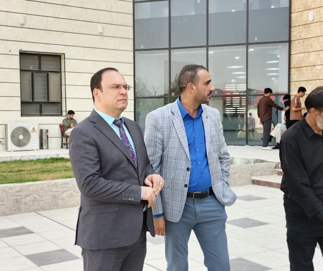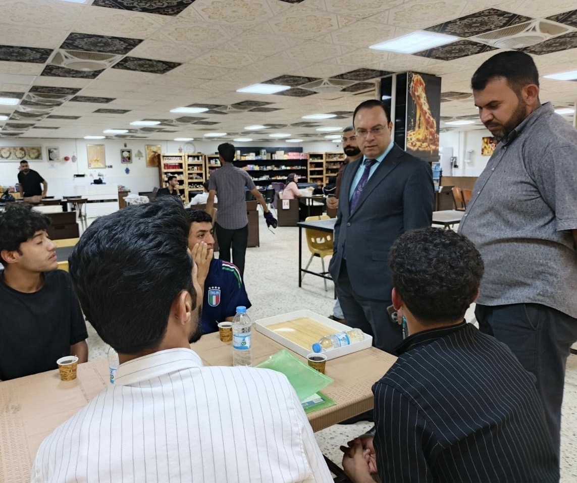 وخلال الزيارة، التقى الدكتور رائد مجيد بعدد من الموظفين والعاملين، موجهاً بضرورة الالتزام بالدوام الرسمي وتقديم أفضل الخدمات للطلبة، كما اطلع على جاهزية المرافق الخدمية في النادي الطلابي، مشيداً بجهود العاملين في توفير أجواء مناسبة للطلبة وداعمة للأنشطة الجامعية.