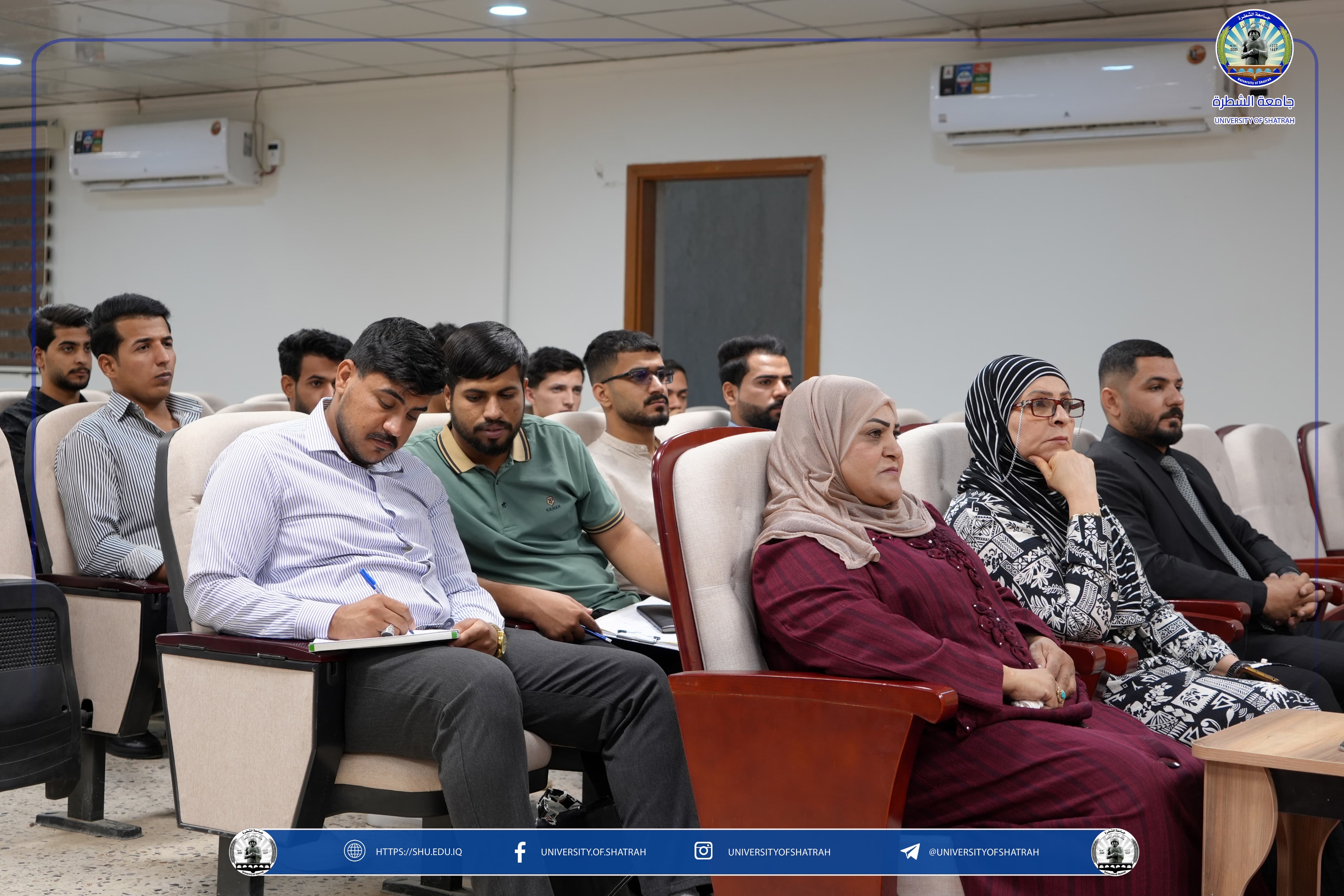برعاية السيد رئيس جامعة الشطرة الأستاذ الدكتور باسم عبد الحسين جار الله المحترم، أقام قسم شؤون الأقسام الداخلية / وحدة البحث الاجتماعي وبالتعاون مع مركز التعليم المستمر ندوة تثقيفية بعنوان "دور الجامعة في توعية الطلبة من مخاطر المخدرات والحماية منها"، اليوم الاثنين 3 تشرين الثاني 2025 على قاعة الشهيد أبي مهدي المهندس، أدارت الندوة السيدة فاطمة سلمان حنون، وحاضر فيها كل من م.م. حسين رزاق جلود وم.م. سيف علي حسين.