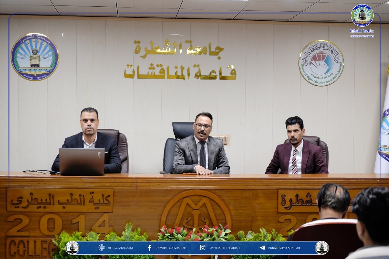 برعاية رئيس جامعة الشطرة الأستاذ الدكتور باسم عبدالحسين جار الله المحترم، نظم مركز التعليم المستمر ندوة علمية بعنوان: "الحاجات المائية للسكان في ظل أزمة المياه (محافظة ذي قار أنموذجاً)"صباح اليوم الأربعاء 19 تشرين الثاني 2025 على قاعة المناقشات في الجامعة، ادار الندوة أ.م.د. علي جابر سعيد، و حاضر فيها كل من:أ.م.د. أحمد باقر جمعة، م.د. مجيد علي شناوة من كلية الاداب - جامعة ذي قار