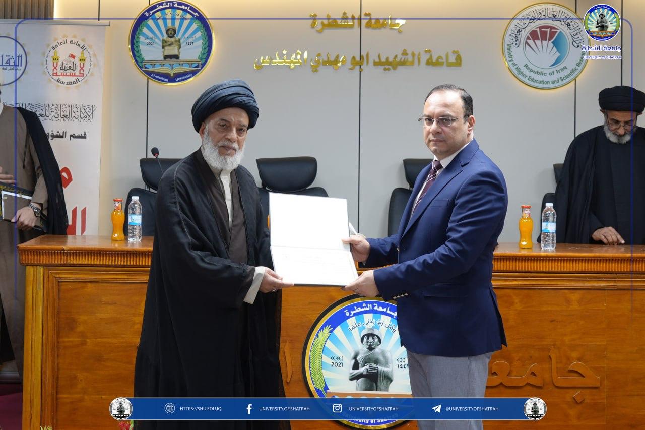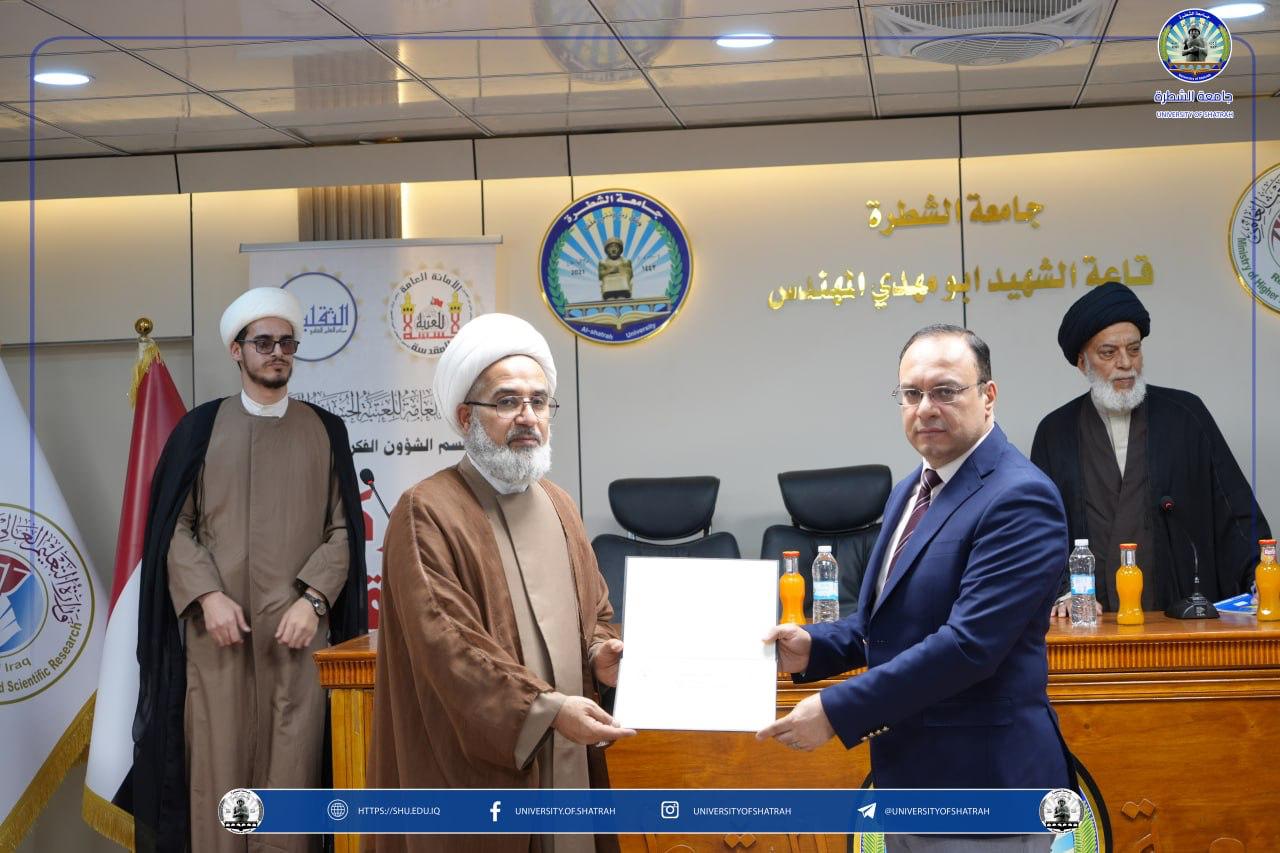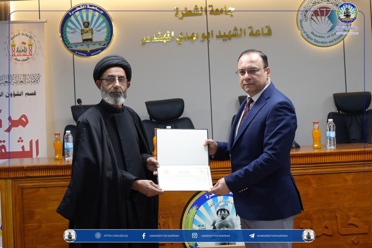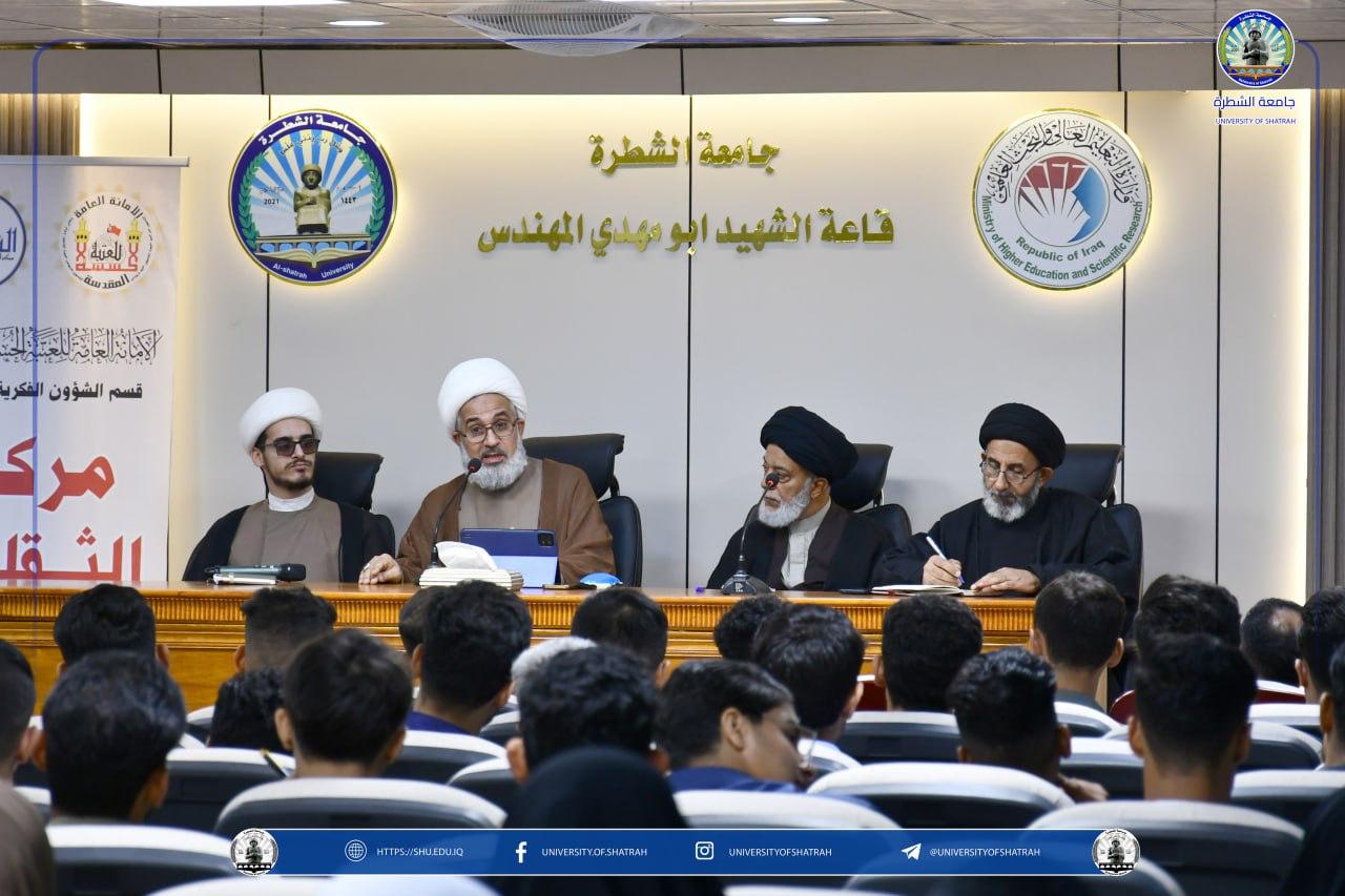 برعاية رئيس جامعة الشطرة الأستاذ الدكتور باسم عبدالحسين جار الله، نظّم قسم الإعلام والاتصال الحكومي وبالتعاون مع الأمانة العامة للعتبة الحسينية المقدسة – مركز الثقلين الثقافي، ندوة فكرية بعنوان “الطالب الجامعي بين أصالة الهوية واغتراب الحداثة”، يوم الثلاثاء