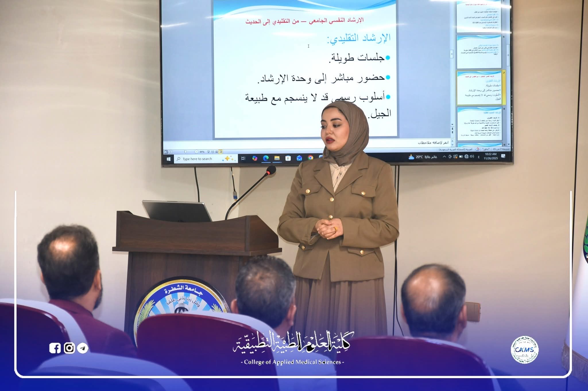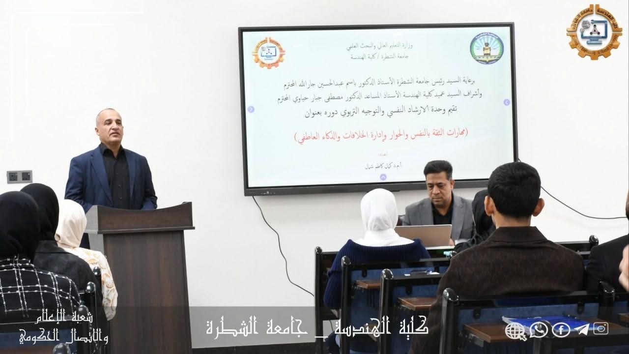 اختتمت جامعة الشطرة فعاليات أسبوع الإرشاد الجامعي 23-27 تشرين الثاني 2025 الذي شهد تنظيم أكثر من 19 ندوة علمية وتثقيفية و 4 حملات توعوية شاركت فيها كليات الجامعة، في إطار سعيها لتعزيز الوعي الطلابي ودعم الطلبة الجدد.