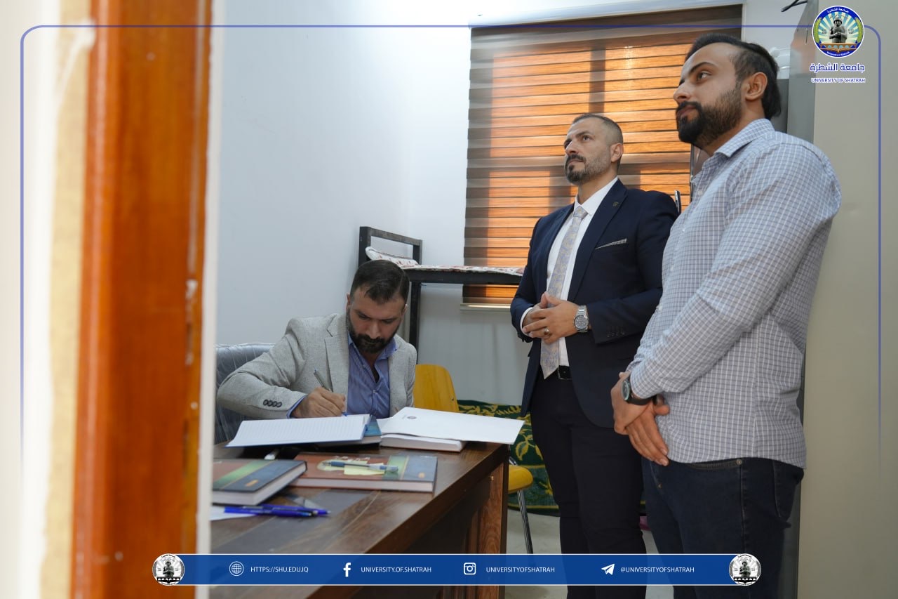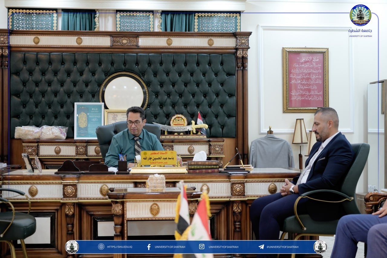 استقبل السيد رئيس جامعة الشطرة الأستاذ الدكتور باسم عبد الحسين جار الله، في مكتبه يوم الاثنين 1 كانون الأول 2025، اللجنة الوزارية المختصة بمتابعة الأقسام الداخلية في الجامعات العراقية.