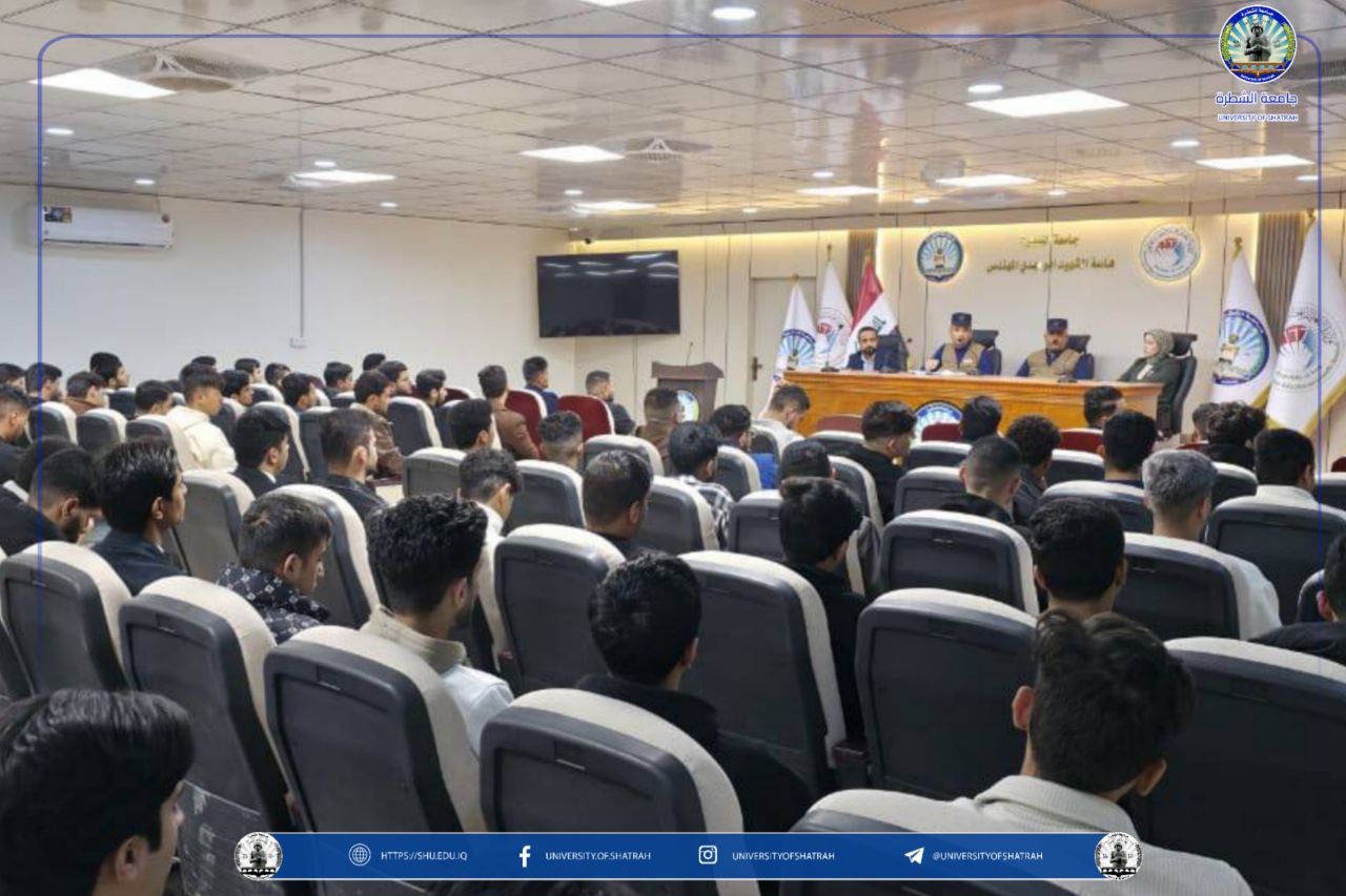 برعاية السيد رئيس جامعة الشطرة الأستاذ الدكتور باسم عبد الحسين جار الله المحترم، نظّمت قسم شؤون الاقسام الداخلية في الجامعة وبالتعاون مع قسم الشرطة المجتمعية في محافظة ذي قار، ندوة توعوية لطلبة الأقسام الداخلية بعنوان (أسباب الابتزاز الإلكتروني والآثار الاجتماعية والنفسية وطرق الوقاية منه)، اليوم الثلاثاء 16 كانون الأول 2025، على قاعة الشهيد ابي مهدي المهندس، حاضر فيها الباحث واثق مجد حيدر، ورئيس المصلحين حسام كريم جنون وأدار الندوة السيد معتز عزيز عبد الرضا والسيدة زهراء صادق هاشم.