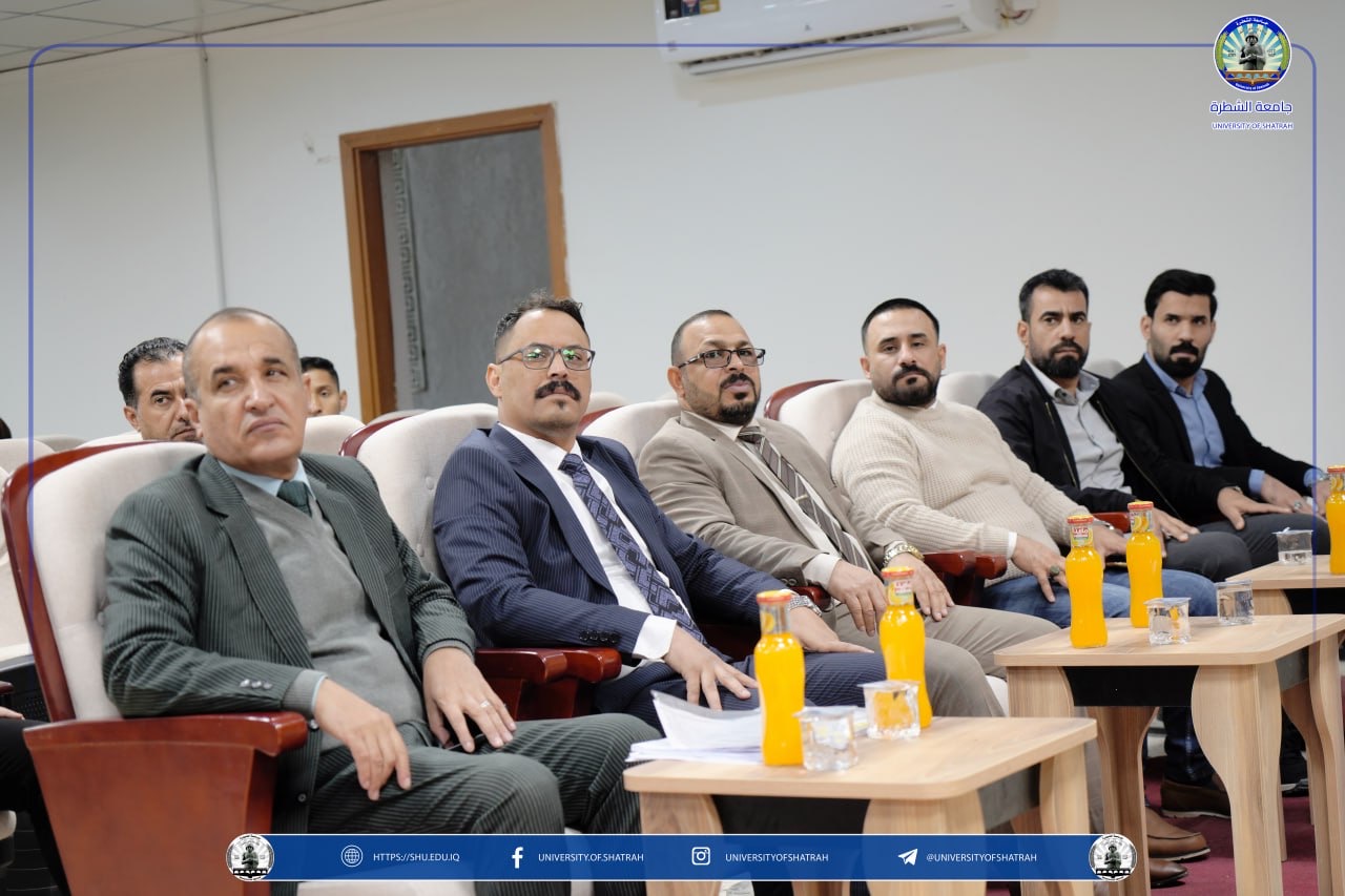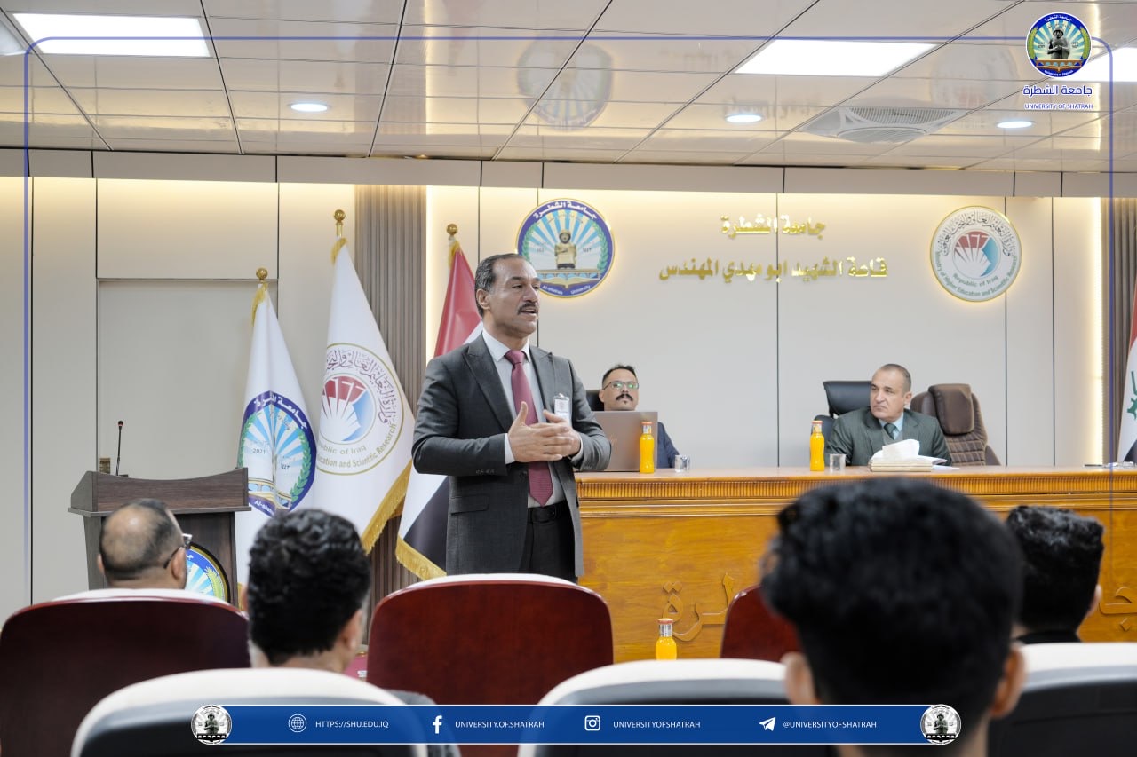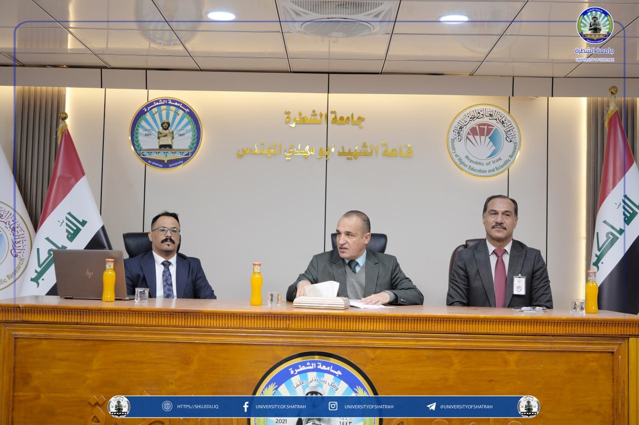 برعاية السيد رئيس جامعة الشطرة الأستاذ الدكتور باسم عبد الحسين جار الله المحترم، وضمن برامجها العلمية الهادفة إلى تعزيز الوعي الأكاديمي بالقضايا الوطنية والاستراتيجية، نظم قسم الدراسات والتخطيط ندوة علمية متخصصة بعنوان استراتيجية الأمن الوطني العراقي اليوم الخميس 18 كانون الأول 2025، في قاعة أبي مهدي المهندس، بحضور نخبة من الأساتذة والباحثين والمهتمين بالشأنين الأمني والاستراتيجي.