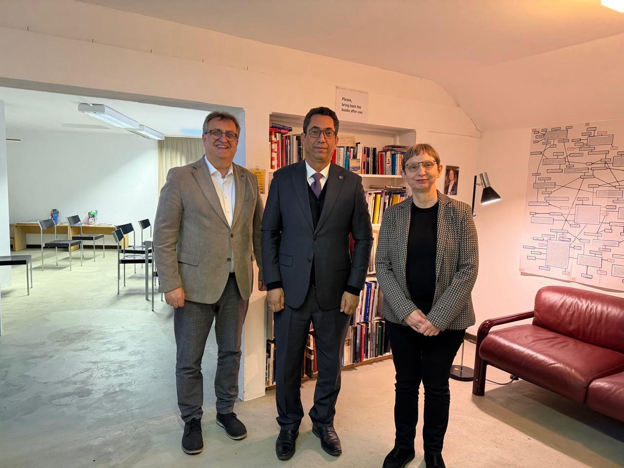 خلال اللقاء أكد رئيس الجامعة على توسيع شراكاتها الدولية مع الجامعات العالمية المرموقة، من خلال تعزيز البرامج الدراسية المشتركة، وبرامج الأستاذ الزائر، وإشراك الطلبة في برامج تدريبية وتخصصية. مشيراً إلى أن هذه المبادرات تسهم في رفع جودة التعليم الجامعي، وتطوير البرامج الأكاديمية، وتعزيز البحث العلمي، وتبادل الخبرات بين الجانبين.