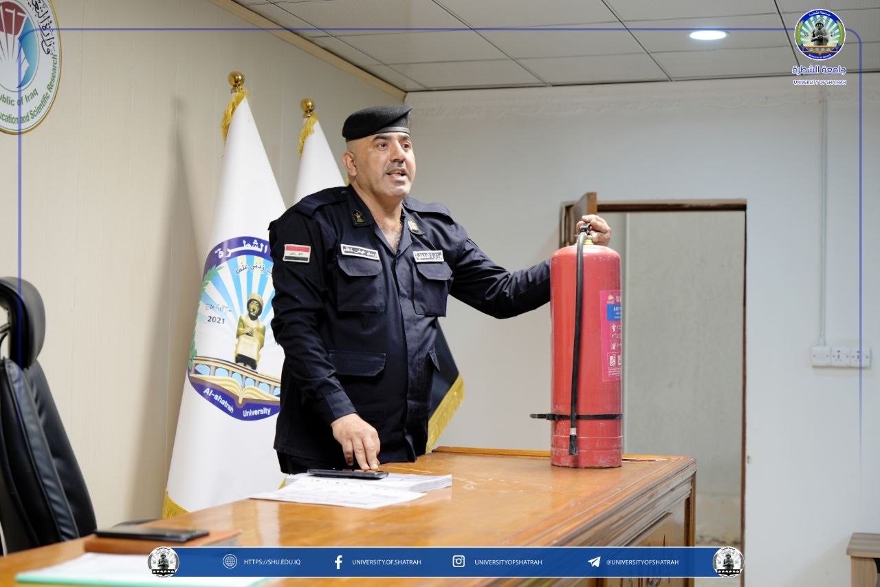 برعاية رئيس جامعة الشطرة الأستاذ الدكتور باسم عبد الحسين الغزي نظم قسم شؤون الأقسام الداخلية / شعبة الباحث الاجتماعي، بالتعاون مع مركز التعليم المستمر، اليوم الأحد الموافق 12 نيسان 2026، ندوة توعوية بعنوان "أنواع الحرائق وطرق مكافحتها وأنواع مطافي الحريق وكيفية استخدامها".