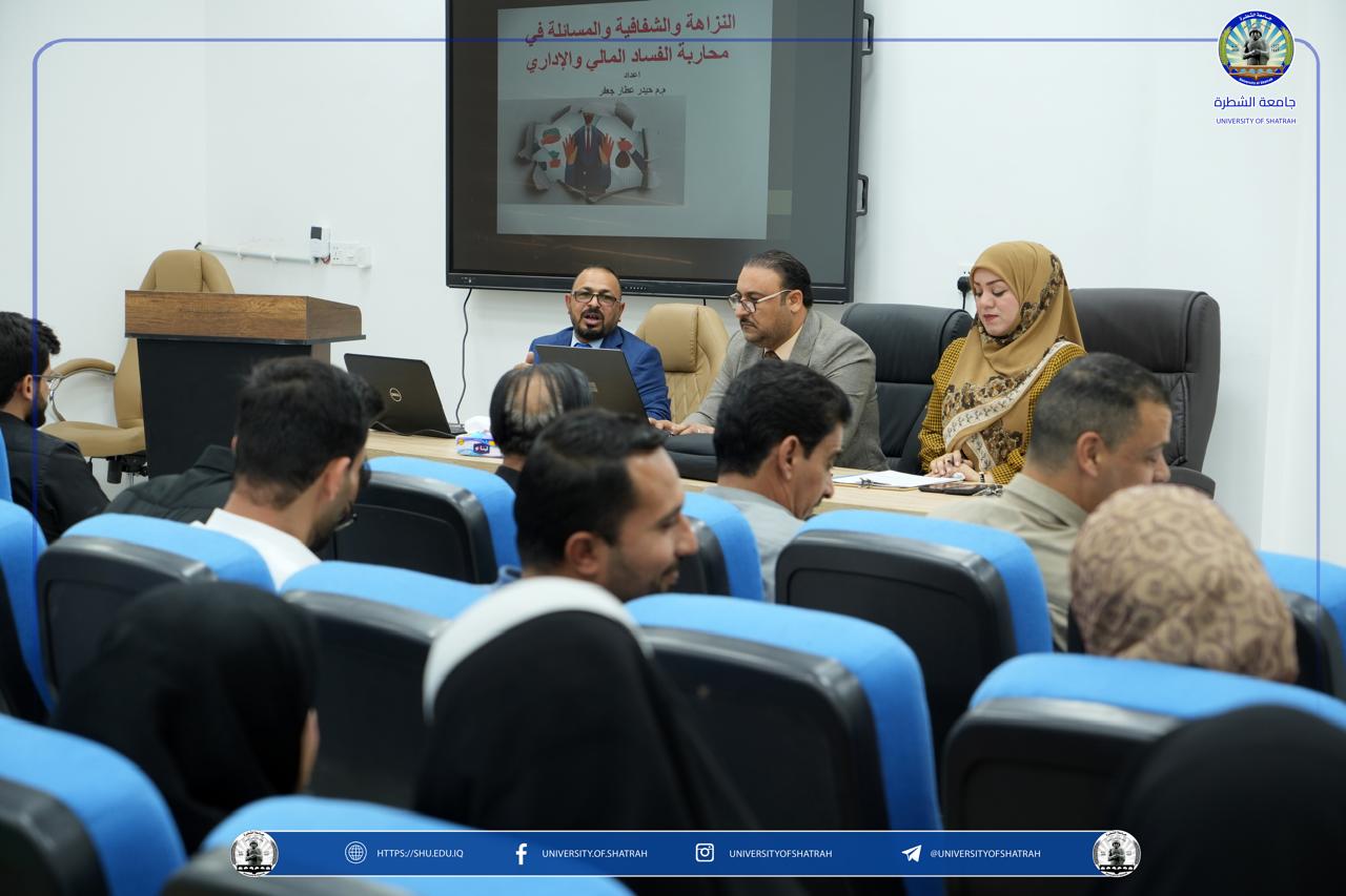 (النزاهة والشفافية والمساءلة ودورها في مكافحة الفساد) يوم الاثنين 6 تشرين الأول 2025 على قاعة التعليم المستمر.
