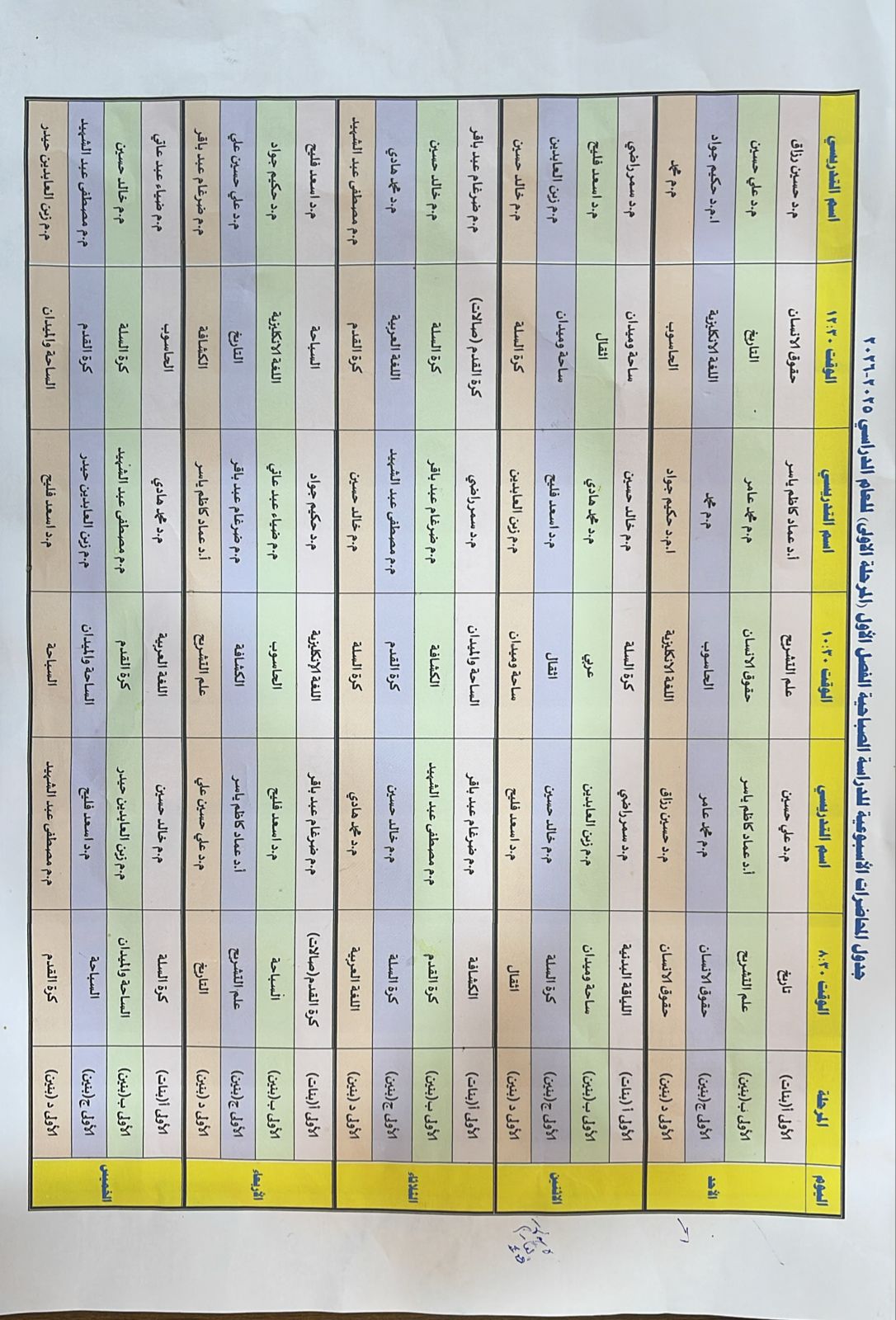الجدول الدراسي للمرحلة الاولى