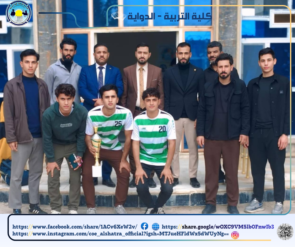 برعاية السيد رئيس جامعة الشطرة الأستاذ أ.د باسم عبدالحسين جارالله، وبدعم ومساندة من عميد كلية التربية أ.م.د صفاء حسين علي، حققت كليتنا إنجازاً مميزاً بحصولها على المرتبة الثانية في بطولة الجامعة، مواصلةً حضورها التنافسي المشرف.