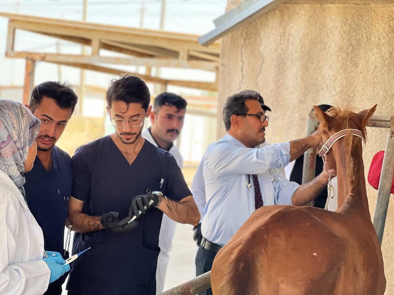 جانب من المحاضرة العملية لطلبة المرحلة الرابعة لمادة السريريات في كلية الطب البيطري