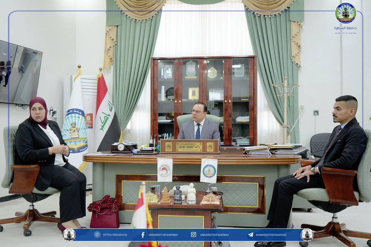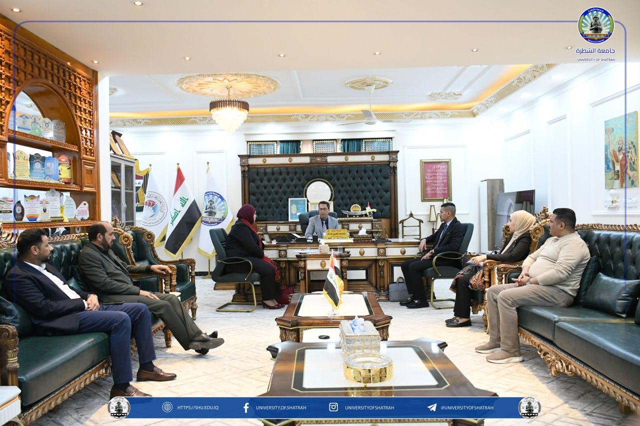 استقبل السيد رئيس جامعة الشطرة الأستاذ الدكتور باسم عبد الحسين الغزي يوم الاثنين ١٦ شباط ٢٠٢٦، في مكتبهُ اللجنة الوزارية المكلفة بمتابعة وتدقيق الملاكات الإدارية في تشكيلات الجامعة وتعزيز احتياجات الجامعة.