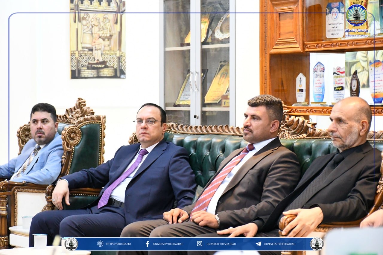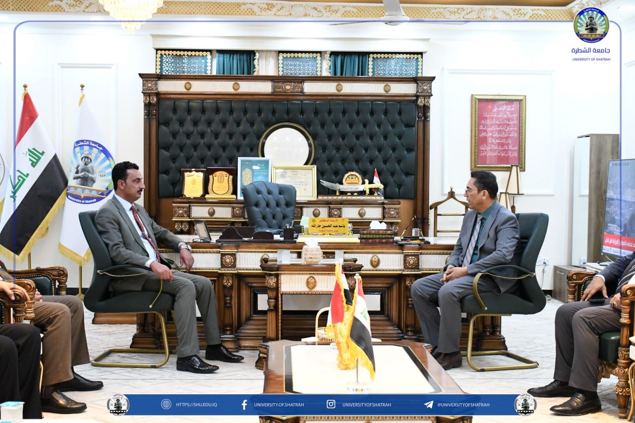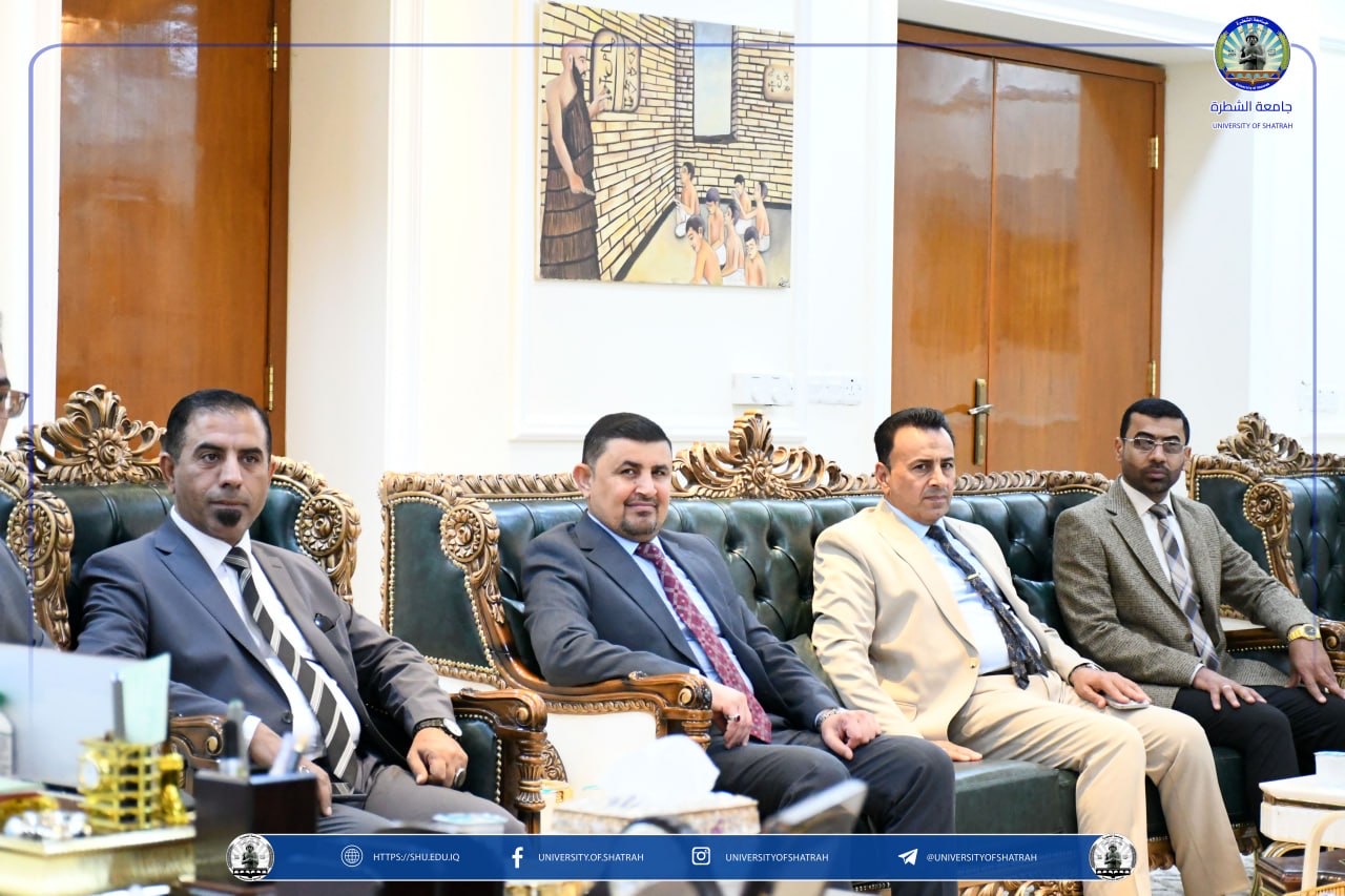 استقبل رئيس جامعة الشطرة الأستاذ الدكتور باسم عبدالحسين جارالله وفد كلية الإمام الكاظم (عليه السلام) للعلوم الإسلامية – أقسام ذي قار برئاسة معاون عميد أ.م.د باسم عبد الجليل جراد الفضلي، في زيارة رسمية في مكتبه اليوم الاثنين 30 آذار 2026، بحضور السيد المساعد الإداري الأستاذ الدكتور رائد مجيد جبار.