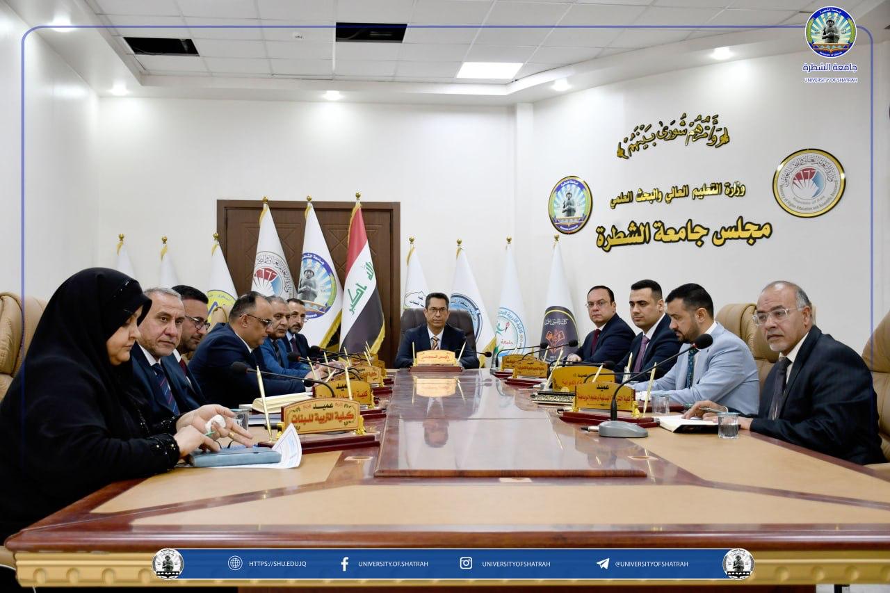 ويأتي انعقاد هذه الجلسة ضمن جهود مجلس جامعة الشطرة المستمرة للارتقاء بالواقع الأكاديمي والإداري، والمضي قدمًا في تحقيق أهداف الجامعة في مجالات التعليم والبحث العلمي وخدمة المجتمع.