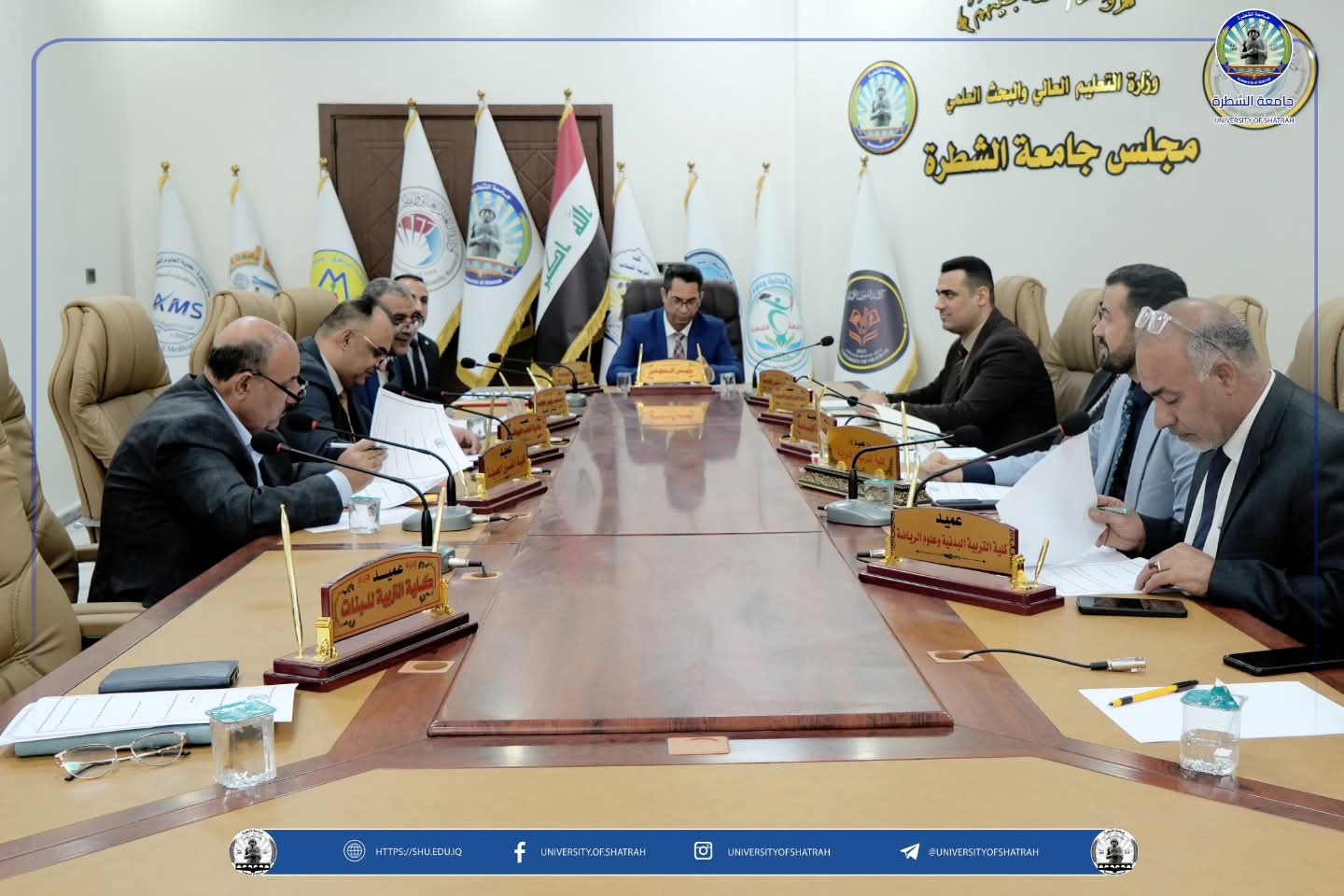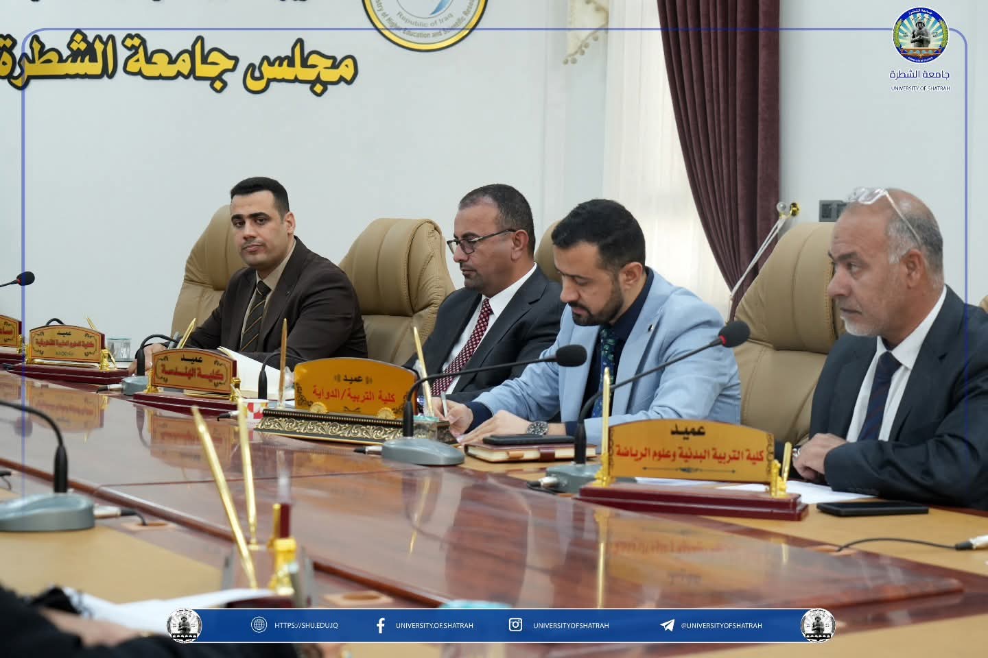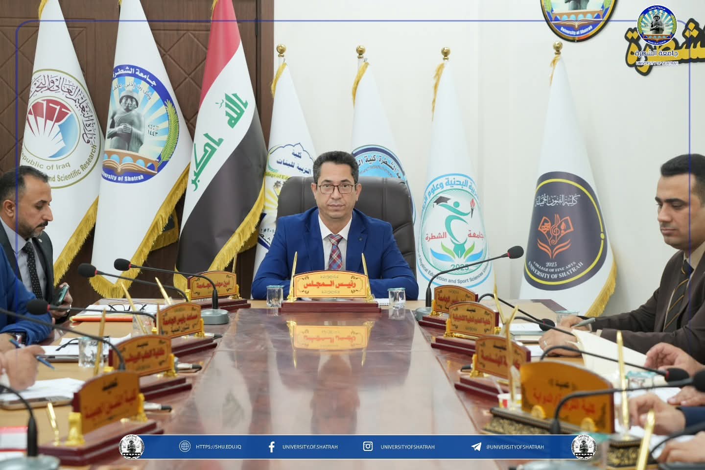 عقد مجلس جامعة الشطرة جلسته الاولى للعام الدراسي 2025-2026 برئاسة السيد رئيس الجامعة الأستاذ الدكتور باسم عبدالحسين جار الله بحضور جميع اعضاء المجلس اليوم الاربعاء 24 أيلول 2025 ، لمناقشة عدد من القضايا العلمية والتعليمية والادارية .